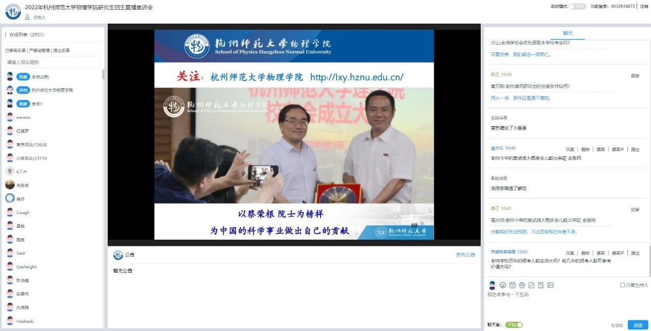 李玉科教授分别介绍了换妻 物理学科四个研究方向(理论物理,凝聚态物理,粒子物理与原子核物理,量子光学)的基本情况,结合学术前沿、研究热点、科研成果、人才培养状况等方面对研究生招生情况进行了全方位的展示。在招生政策解答环节,相关老师就前期收集的考生关注的高频问题进行了详细解释说明,并针对考生当场提出的问题逐一进行了答疑解惑。