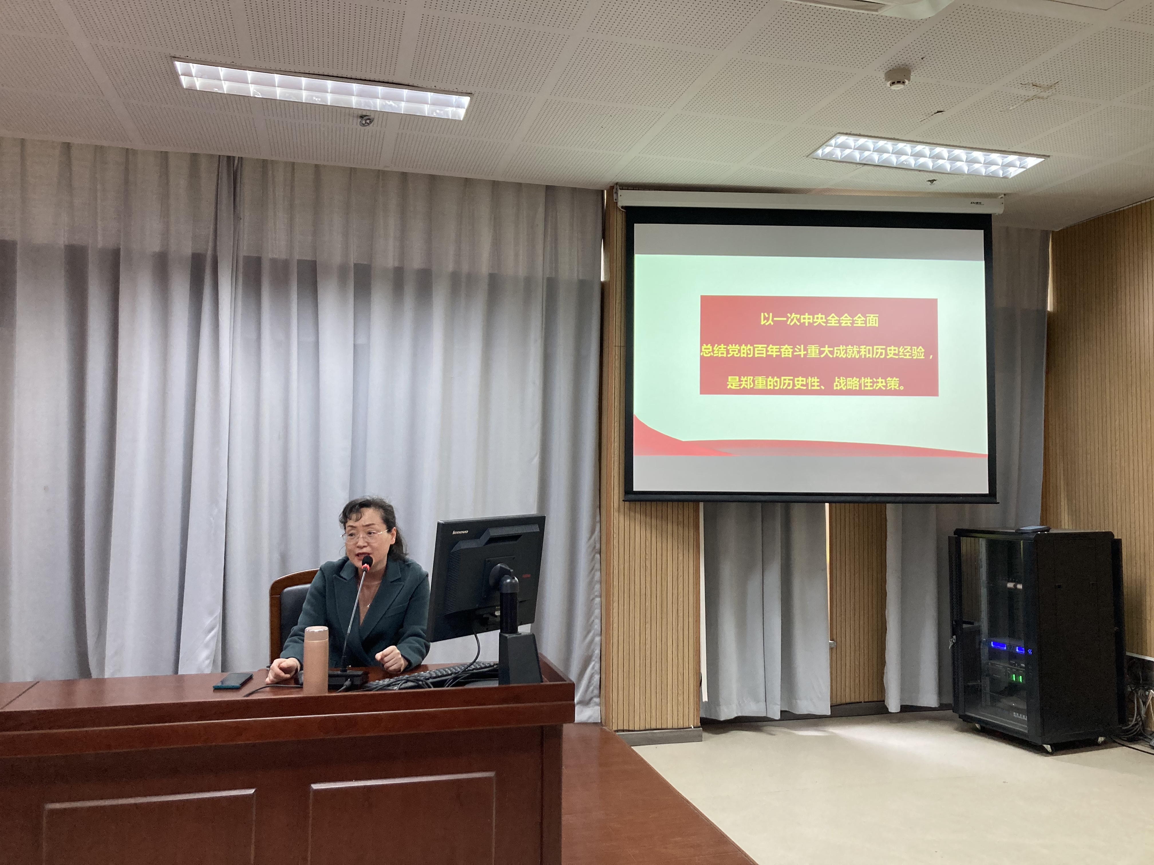 王康教授从《中共中央关于党的百年奋斗重大成就和历史经验的决议》内容的特点、百年奋斗的时代使命和恢宏答卷、百年奋斗的历史意义和宝贵经验、决议的突出亮点和重大贡献这四方面入手,结合具体案例为在场的党员和入党积极分子进行了细致入微的讲解,内容全面,指导性强。同学们纷纷表示,通过王老师的讲解,他们对于这份决议有了更深入的了解,对于我们党的十九届六中全会精神有了更进一步的理解。
