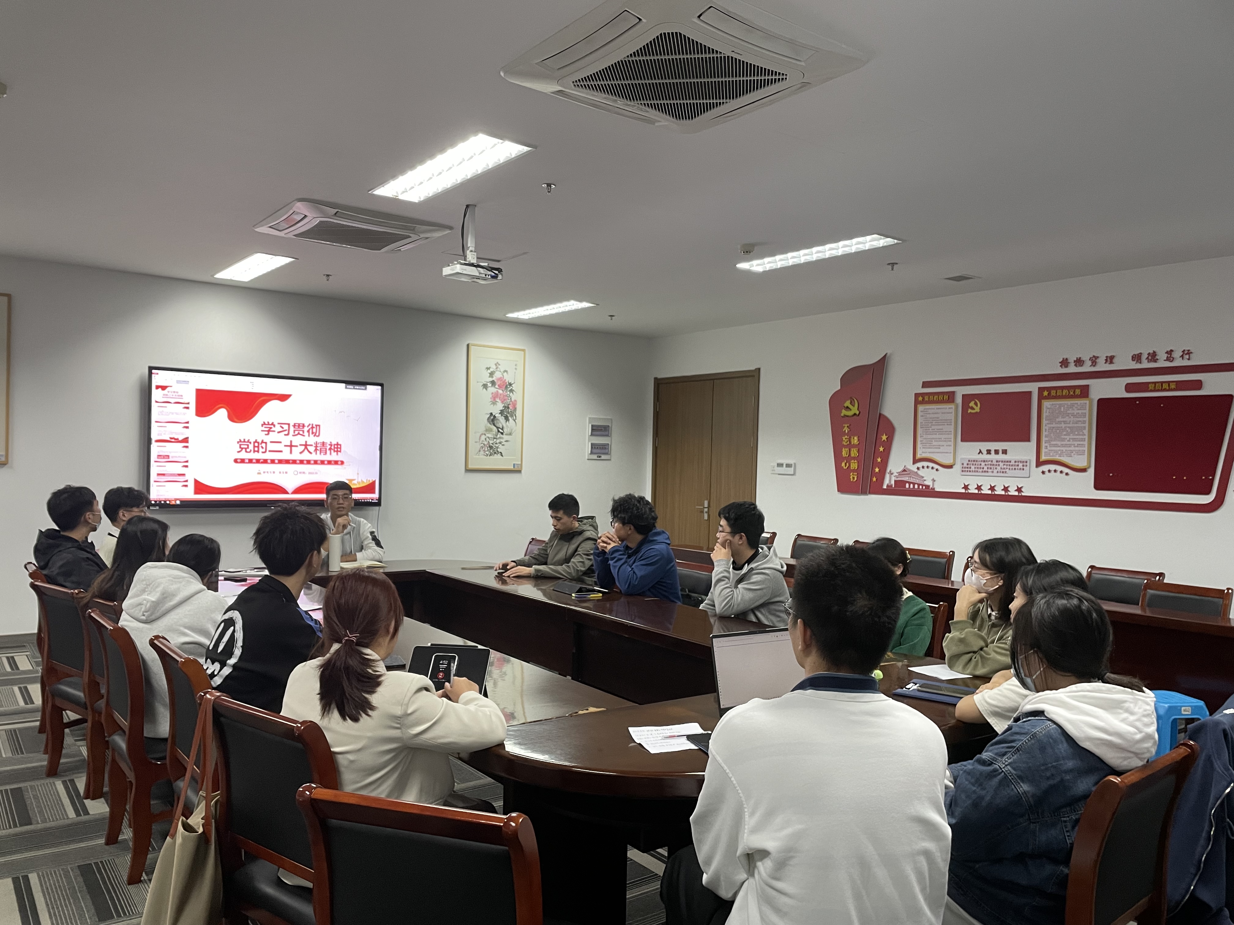 研究生第一党支部于10月26日在勤园19-226开展了十月份主题党日活动,活动内容包括两个方面,一是学习党的二十大报告,二是进行考研经验分享课试讲。