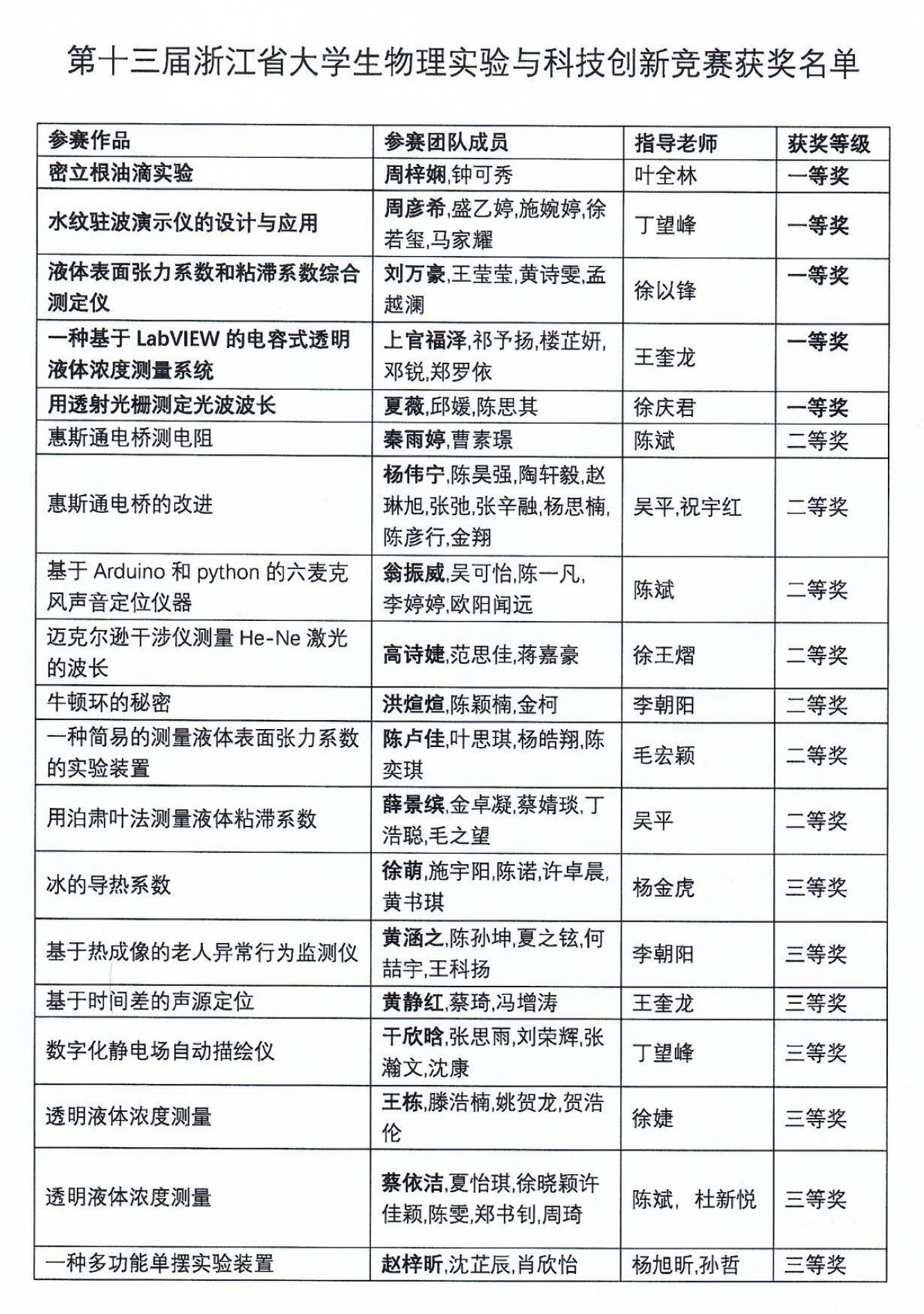 近日,第十三届浙江省大学生物理实验与科技创新竞赛顺利落下帷幕,该项赛事有来自全省共56所高校,2781个项目参加初赛,共推荐出来自54所高校的627支队伍进入本次决赛环节。经过网评环节,共有51所高校,365支队伍进入互评和线上答辩环节。最终共评选出主赛道:81项一等奖、159项二等奖、236项三等奖。