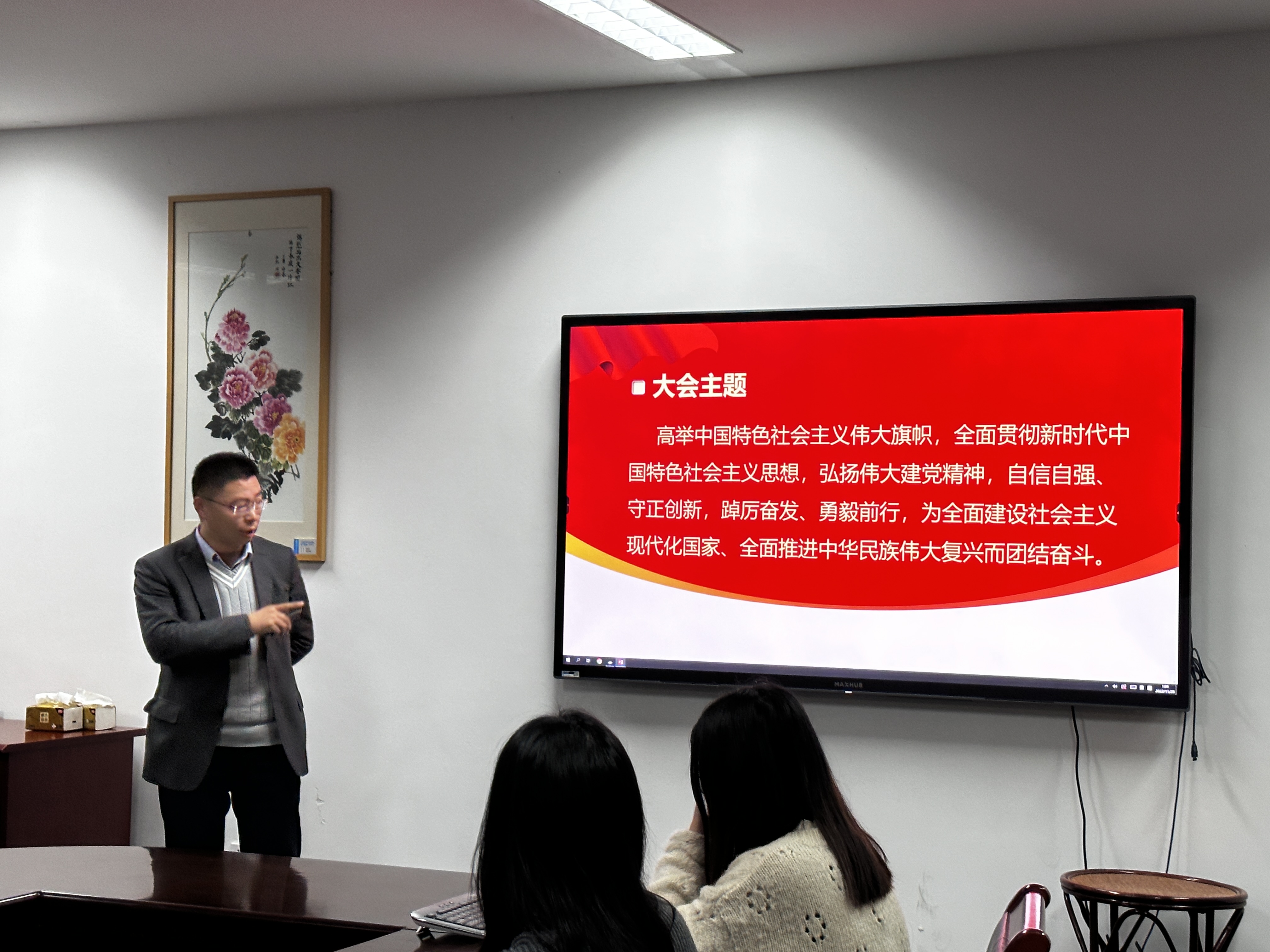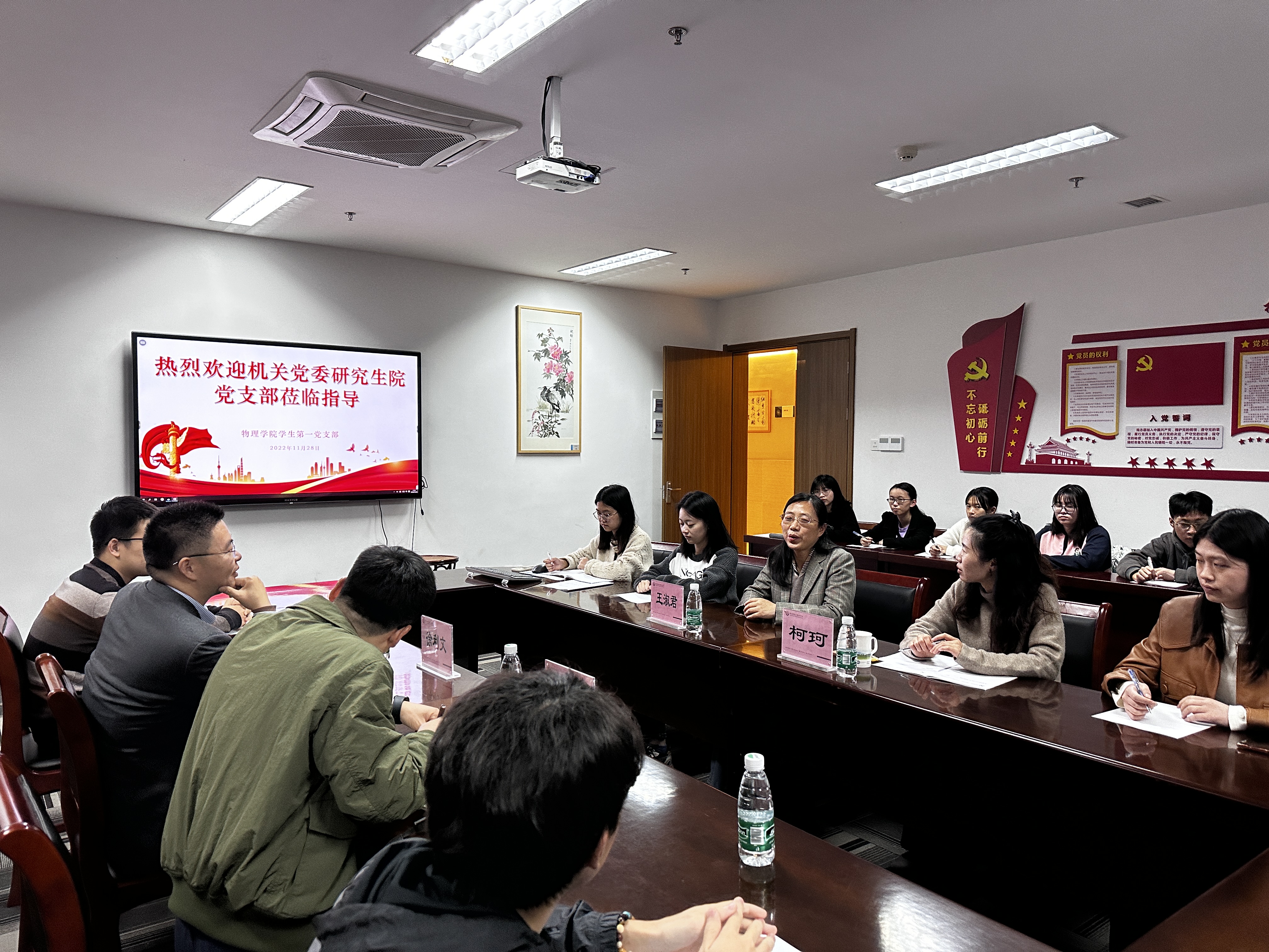 11月28日下午,机关党委研究生院党支部书记徐利文为换妻 学生第一党支部作题为“牢记‘三个务必’,争做拔尖创新人才——学习宣传贯彻党的二十大精神”宣讲。活动由党委书记王淑君主持。