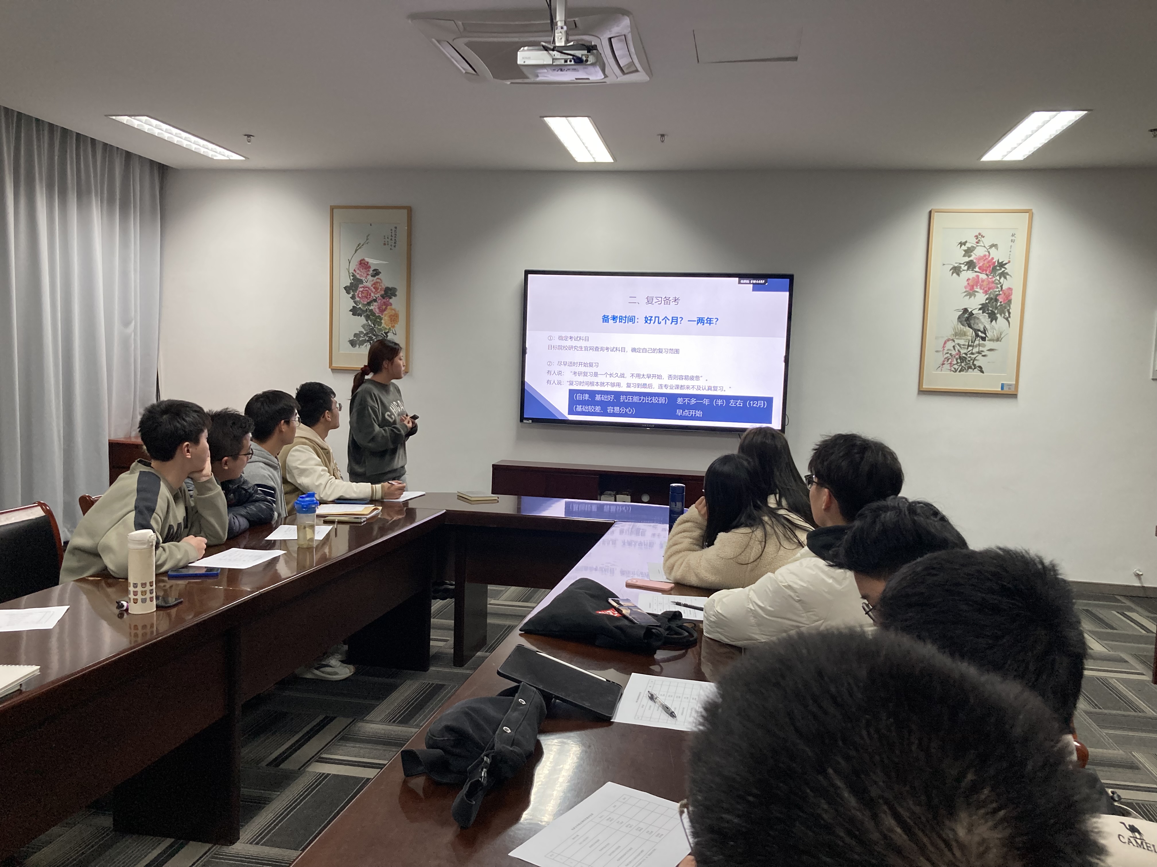 考研经验分享精品课程面向学院本科生推出,经历了上学期的第一次打磨,党员们根据老师和学生的意见进行修改和提升后,在本次本次党日活动上进行展示和试讲。课程共分为“为什么要考研”、“考研的具体流程”、“考研的基本知识”、“如何查找心仪院校”、“考研需要的参考书目推荐”、“考研过程中心态如何调整”六个主题,在六个主题小组的讲解下,让本科生可以清晰了解考研的相关知识,为她们拨开考研的迷雾。经过此次打磨,该课程已经比较完善,预计在本学期面向学院本科生推出。