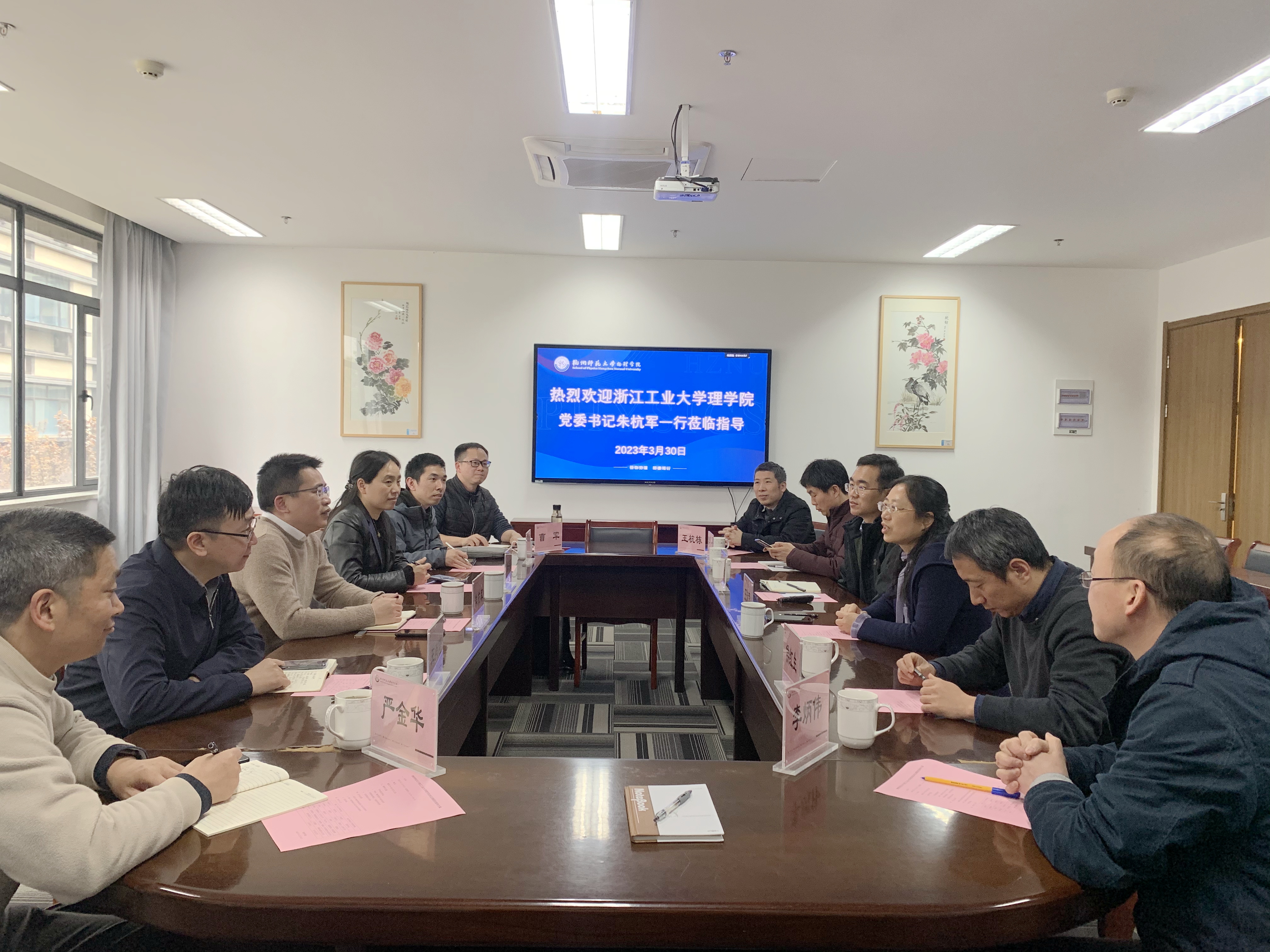 3月30日,浙江工业大学理学院党委书记朱杭军、副院长朱海燕教授、副院长王肖隆教授等一行六人前来换妻 调研学科建设等工作。学院党委书记王淑君、副院长侯红生和孙哲教授、教师代表等参与调研座谈。会议由党委书记王淑君主持。