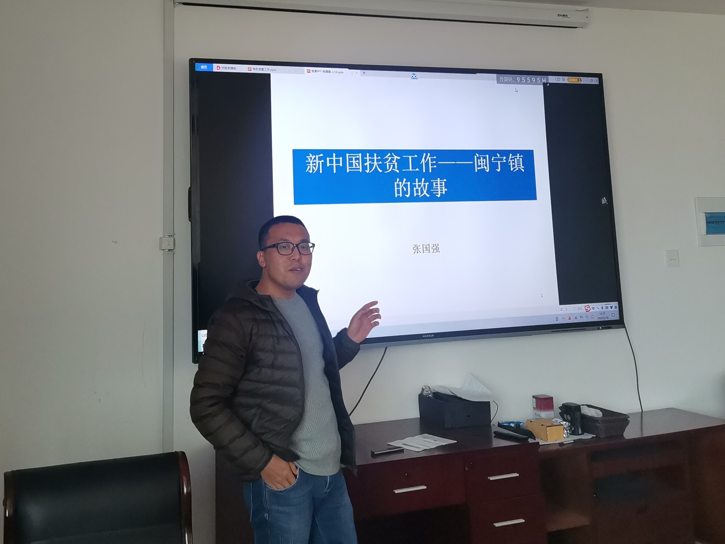 在“人人党课”环节,由支部张国强老师作了题为《新中国扶贫工作——闽宁镇的故事》的报告,介绍了新中国成立以来各个阶段的扶贫措施和成就。从输血救济式扶贫、体制改革推动扶贫,到大规模开发式扶贫、“八七”扶贫攻坚、村级扶贫攻坚,最终通过扶贫攻坚决战于2020年11月23日实现全国832个贫困县全部脱贫摘帽。闽宁镇是热播电视剧《山海情》故事的发生地,该剧讲述了20世纪90年代,宁夏西海固贫困群众在政府号召下完成易地搬迁,在福建的对口帮扶下改造荒滩、开拓家园的奋斗故事。