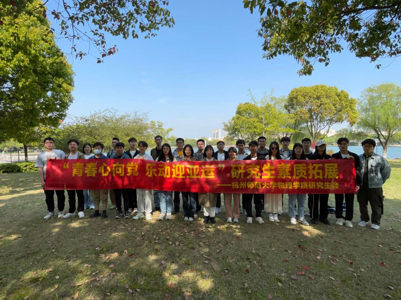 4月9日,春光明媚,由换妻 研究生会主办的“青春心向党,乐动迎亚运”研究生素质拓展活动在嘉兴南湖顺利进行,三十余位研究生参加了此次活动。