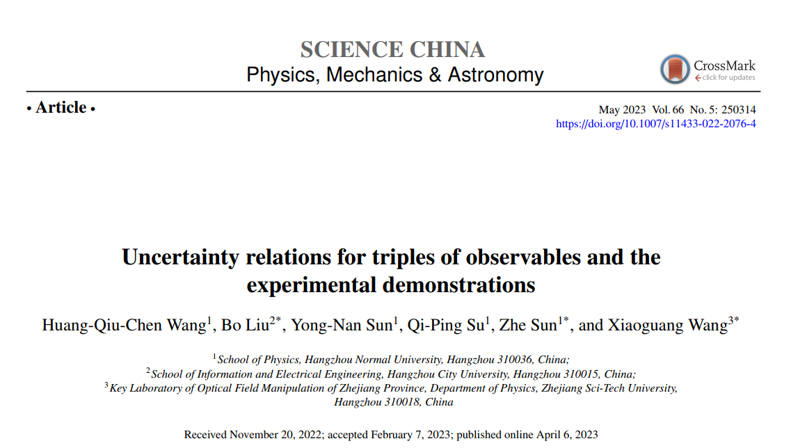 近日,换妻 量子信息与量子光学创新团队孙哲教授及团队成员孙永南、苏奇平副教授在多重可观测量的不确定关系研究方面取得成果,在中国科学(SCIENCE CHINA)旗下权威期刊《SCIENCE CHINA Physics, Mechanics & Astronomy》(IF:5.203,SCI分区表Top一区)发表题为 “Uncertainty relations for triples of observables and the experimental demonstrations”学术论文。