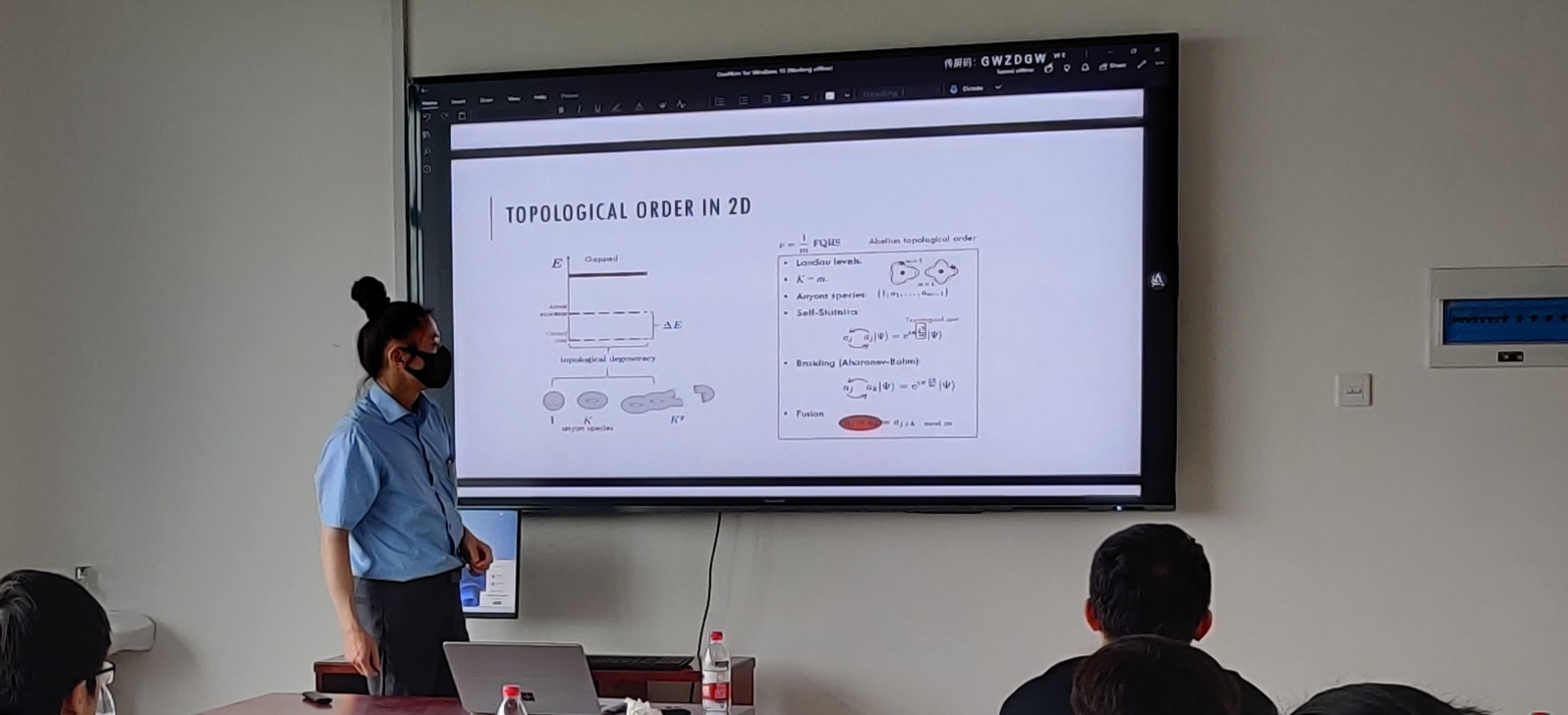 讲座过程中师生们踊跃发言,讨论热烈。大家积极与万义顿教授互动,分享自己对拓扑序与拓扑量子计算的理解和研究思考,探讨相关领域的前沿问题。