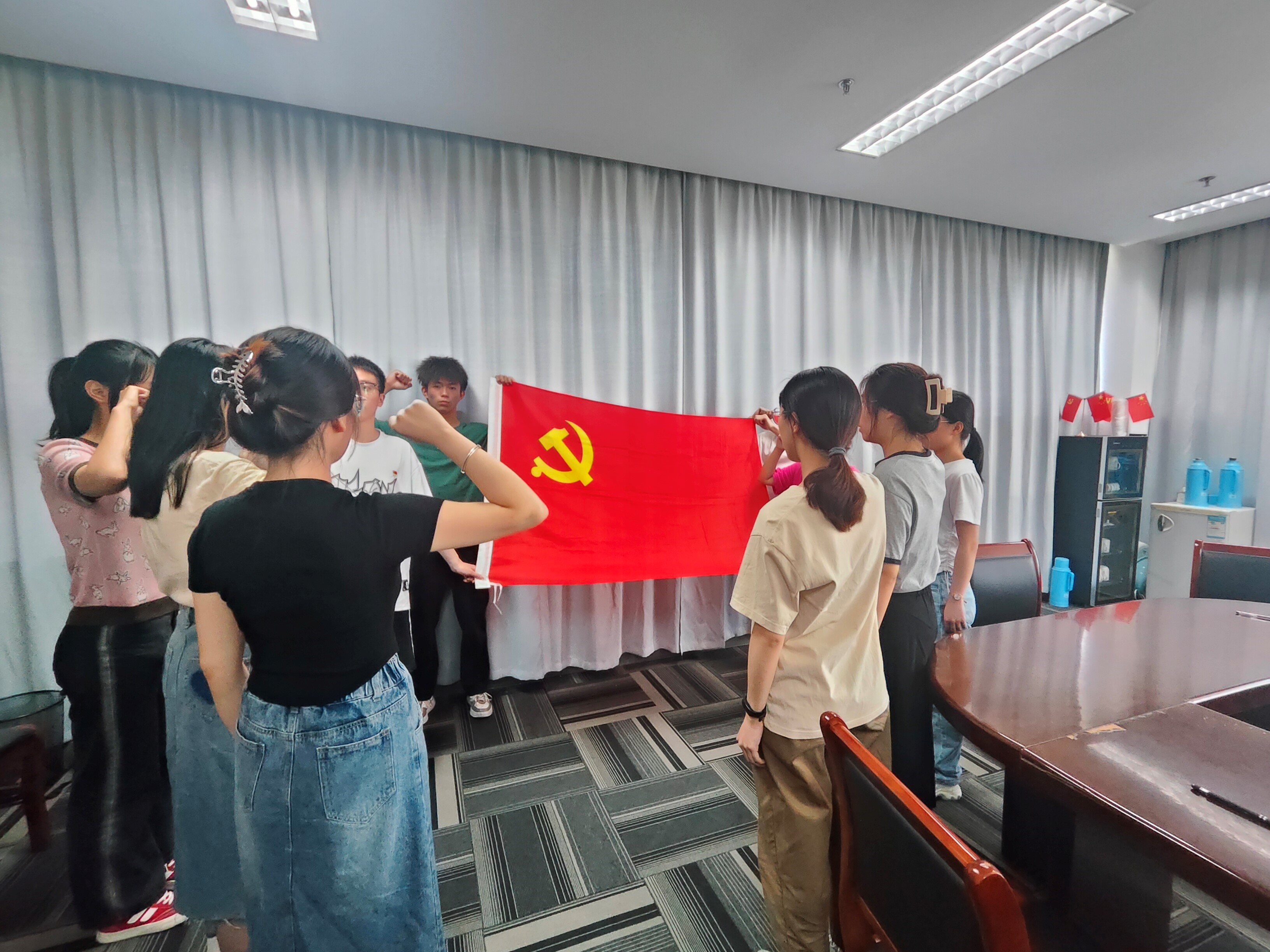 最后,经支部讨论投票决定,通过王娟子等11位同志转正为中共正式党员,夏怡琪等13位同志发展为中共预备党员。会议的最后,由支部书记吴季强带领全体党员面对党旗庄严宣誓中国共产党入党誓词。