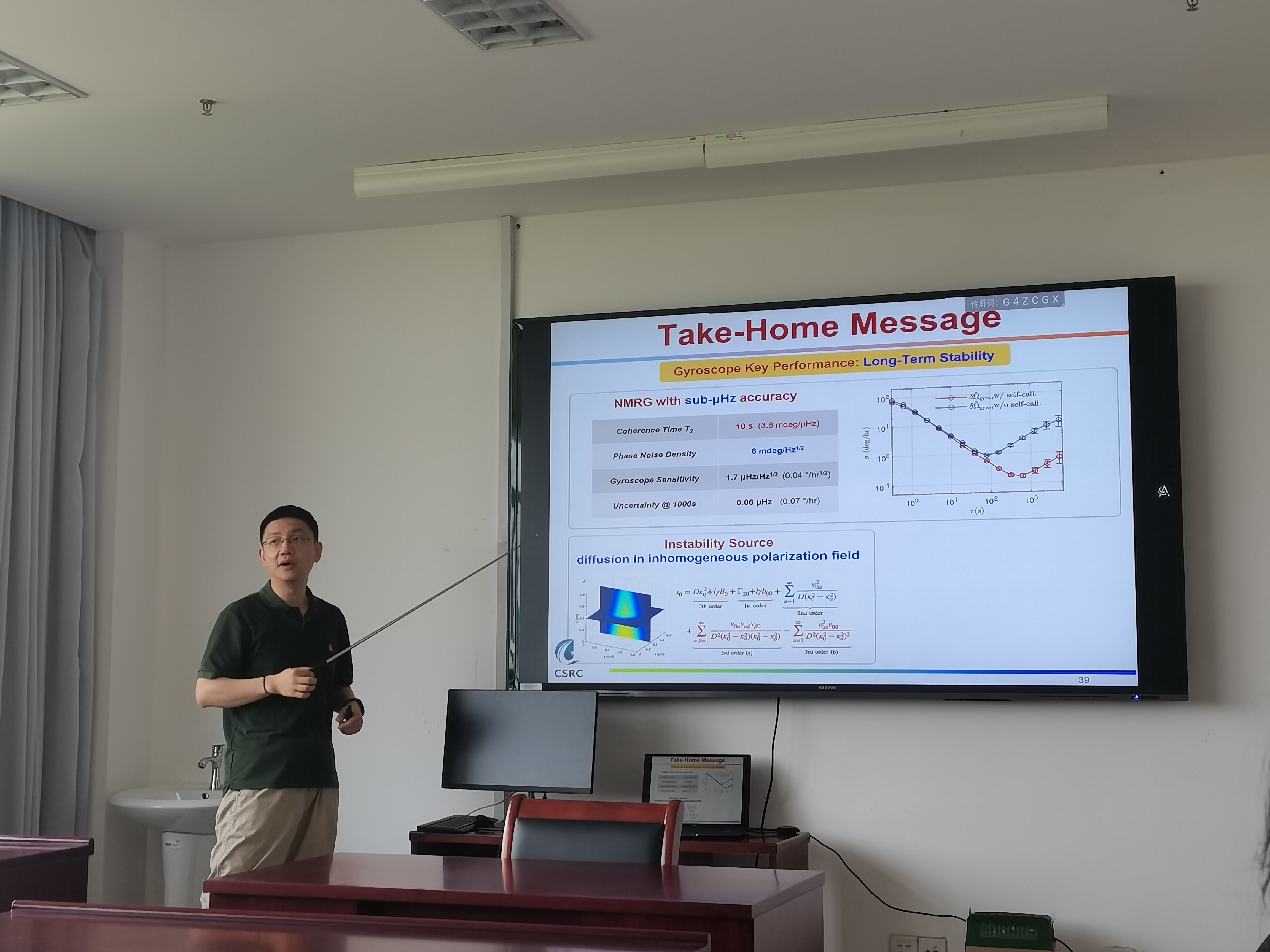 6月12日,北京计算科学研究中心赵楠研究员来换妻 给光学方向的师生分享交流在原子陀螺仪上的实验进展,本次学术报告标题为“ Navigation by Spins ”。报告中,赵楠研究员分享了用碱金属原子(如Rb原子)的电子自旋和稀有气体原子(如Xe原子)的核自旋来实现核磁共振陀螺仪(NMRG),并且讨论了用于提高NMRG稳定性的几种方法。赵老师风趣幽默,细致入微,讲到关键部分还多次举出实例来引导同学们理解。