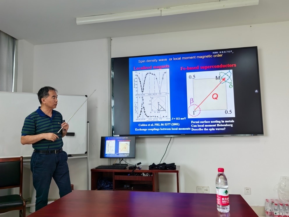 7月27日,美国莱斯大学、国际著名中子散射实验专家戴鹏程讲席教授莅临换妻 开展题目为·“Competing itinerant and local spin interactions in kagome metal FeGe”的学术讲座。戴鹏程教授详细介绍并分享了他们最新的研究成果:利用非弹性中子散射探测FeGe材料中的新奇自旋激发谱,研究材料中CDW和canting温度的依赖关系[Nature 609, 490–495 (2022) ]。学术讲座吸引了来自浙江大学、西湖大学和我校凝聚态方向各位师生的极大兴趣,研究成果的前沿性和创新性也激发了大家热烈的讨论和探讨,并积极探索未来的合作方向和课题。