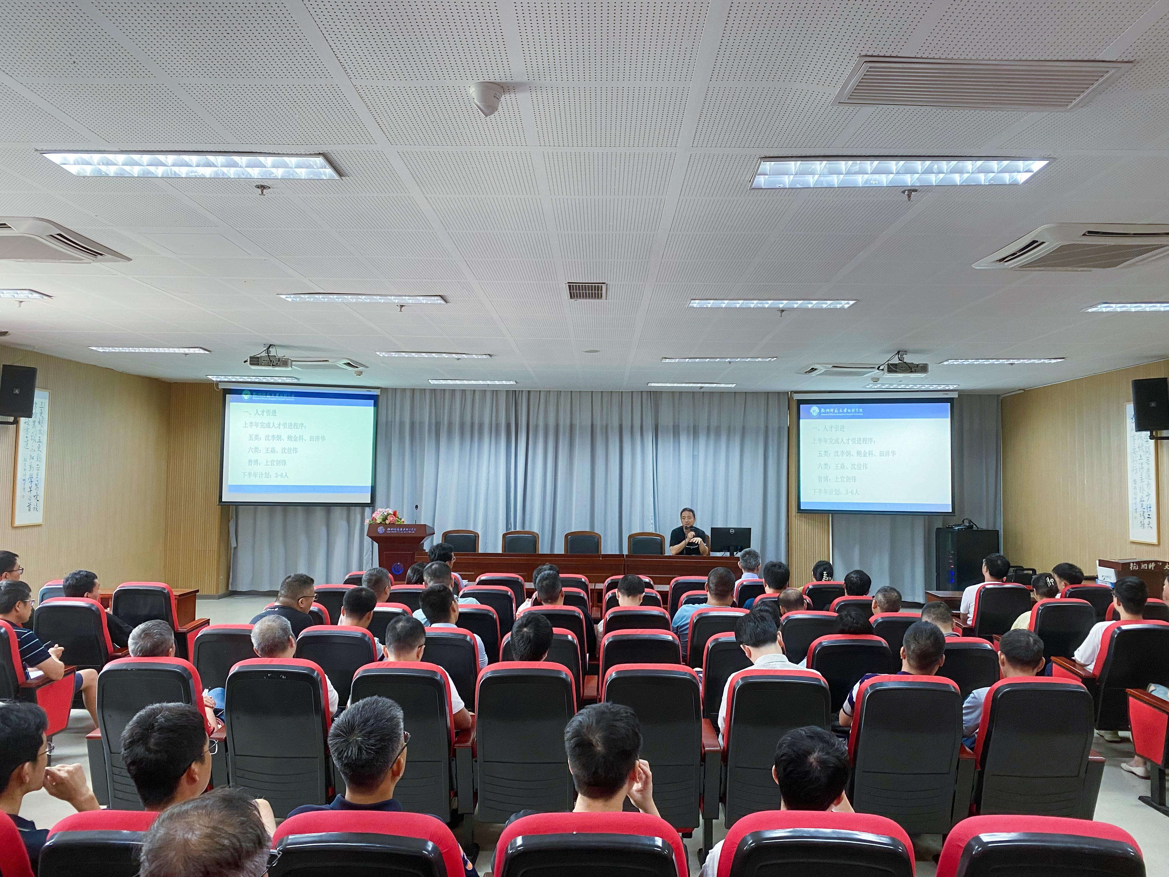 会上,院长侯红生从暑期工作的科研、基金和学术交流,省重大、重点基金申报,省基金申报、省市创新团队申报、教师参加学术会议和报告情况、杭州博士后科创精英赛、就业工作招生情况、学生竞赛、社会服务和实践和关爱学生等方面进行了汇报,并对新学期工作的重点任务和计划进行了重点的解读。他向获得奖项以及取得成果的老师表示祝贺,并肯定了各位老师为学院所做出的贡献。同时也指出,由于大环境的变化,目前存在学生就业难、难就业的问题,未来需要花费更多心思去解决好学生的就业问题。新学期继续做好老生返校和2023级新生报到工作,亚运期间学生工作要精心部署、周密安排、细化任务,强化人文关怀,完善服务保障。