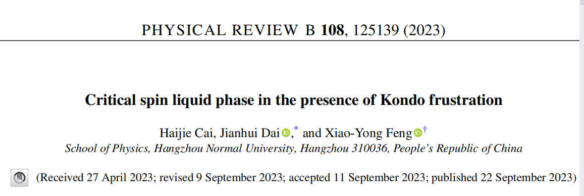 换妻 硕士研究生蔡海杰及合作者在凝聚态物理著名期刊Physical Review B上发表题为“Critical spin liquid phase in the presence of Kondo frustration”的研究论文
