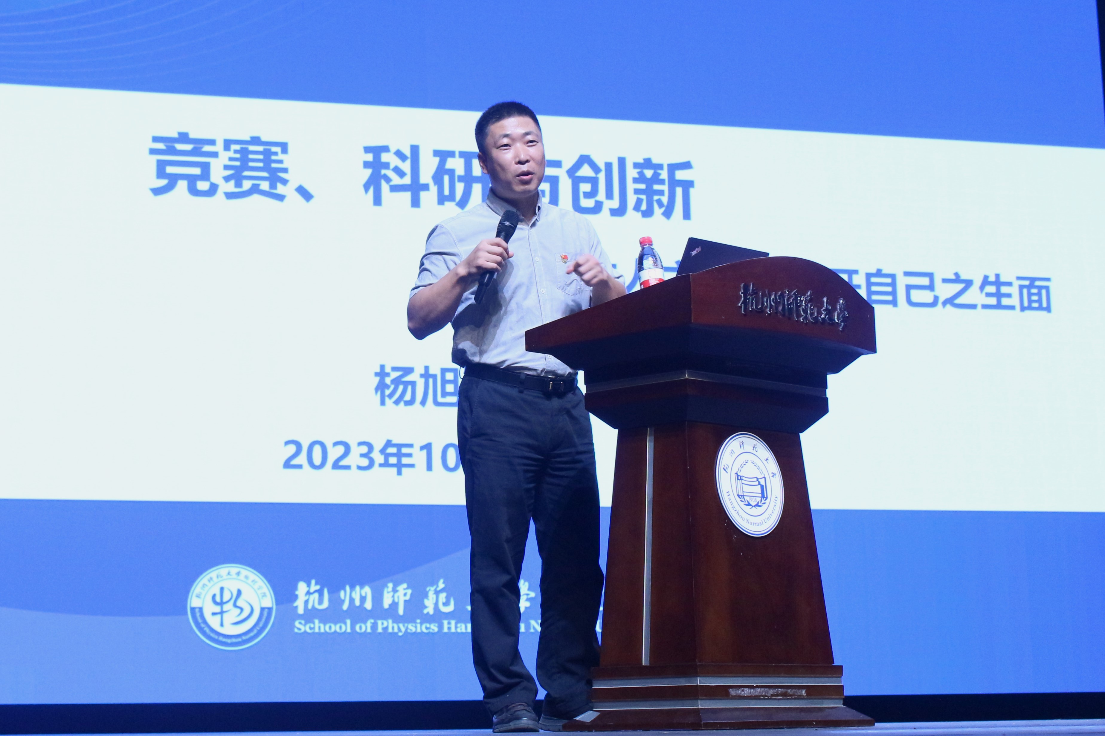 讲座伊始,杨老师通过历史上老杨(杨志发)发现秦始皇兵马俑的故事,引入本次“竞赛、科研与创新- -以古人之规矩,开自己之生面”主题讲座,并且通过邓稼先、钱学森黄大年、孙家栋、杨振宁等伟大物理学家的先进事迹和爱国故事阐明了“理论联系实际”和“家国情怀”在创新过程中的重要性。