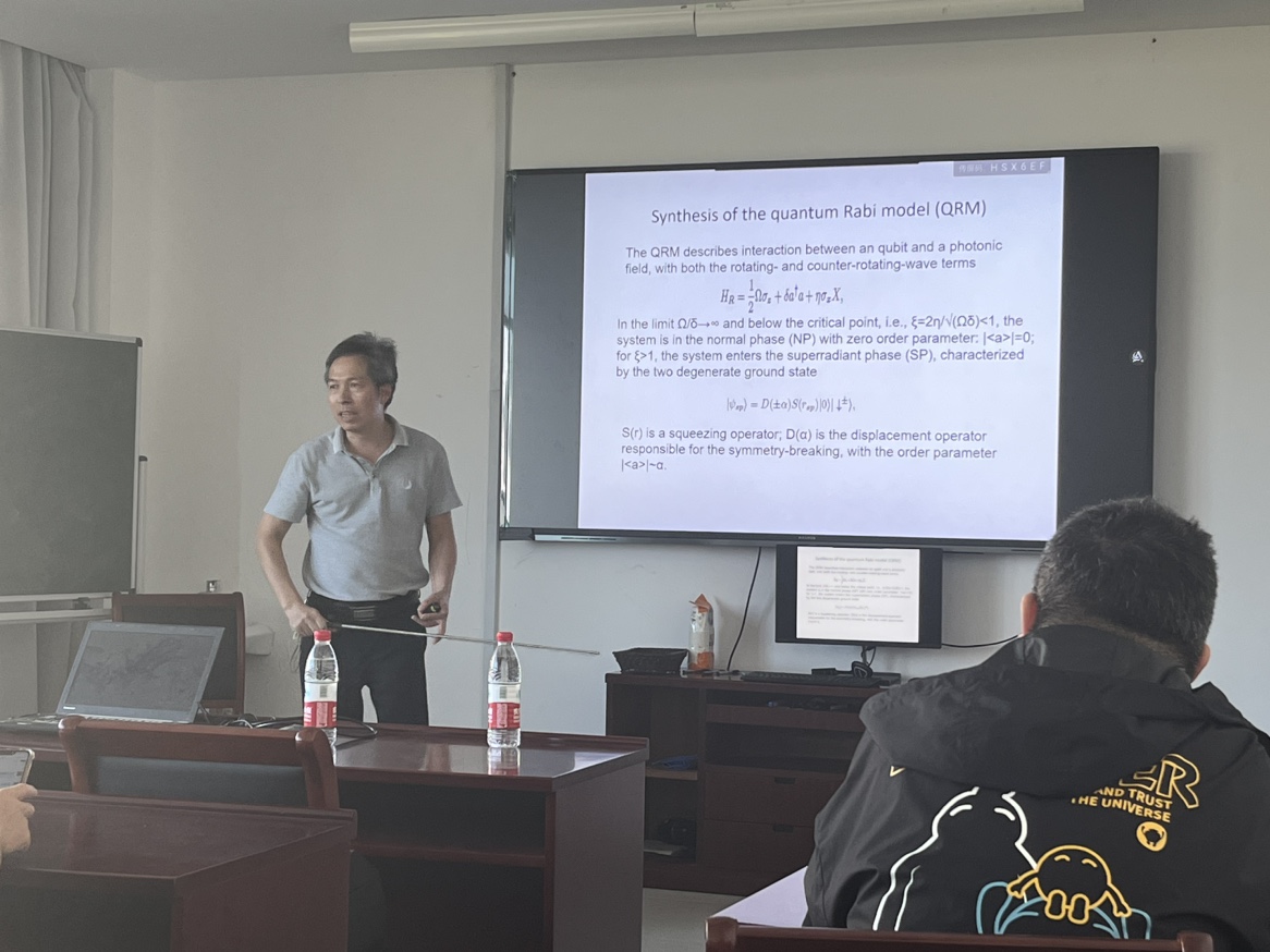 郑仕标教授本次报告的主要内容围绕在电路QED系统中进行的一些量子相变实验和模拟。首先介绍量子拉比模型(QRM),该模型由超导量子比特和微波谐振器合成。随后,郑老师展示用该QRM实现的一阶超辐射相变,其特征是光子超级猫态的出现,由真空态和两个相相反的相干态组成。接下来,郑老师详细介绍了用拉比模型对狄拉克粒子的量子模拟和非厄米哈密顿的研究。最后,郑老师在电路QED架构中展示了一种特殊纠缠现象的实验演示。报告会上,大家积极踊跃与郑老师交流,郑教授也对换妻 师生给予高度的评价和认可。本次学术交流更加激励了广大师生的科研兴趣和动力,活跃了学术气氛,对换妻 师生的学习和工作具有很大的帮助。
