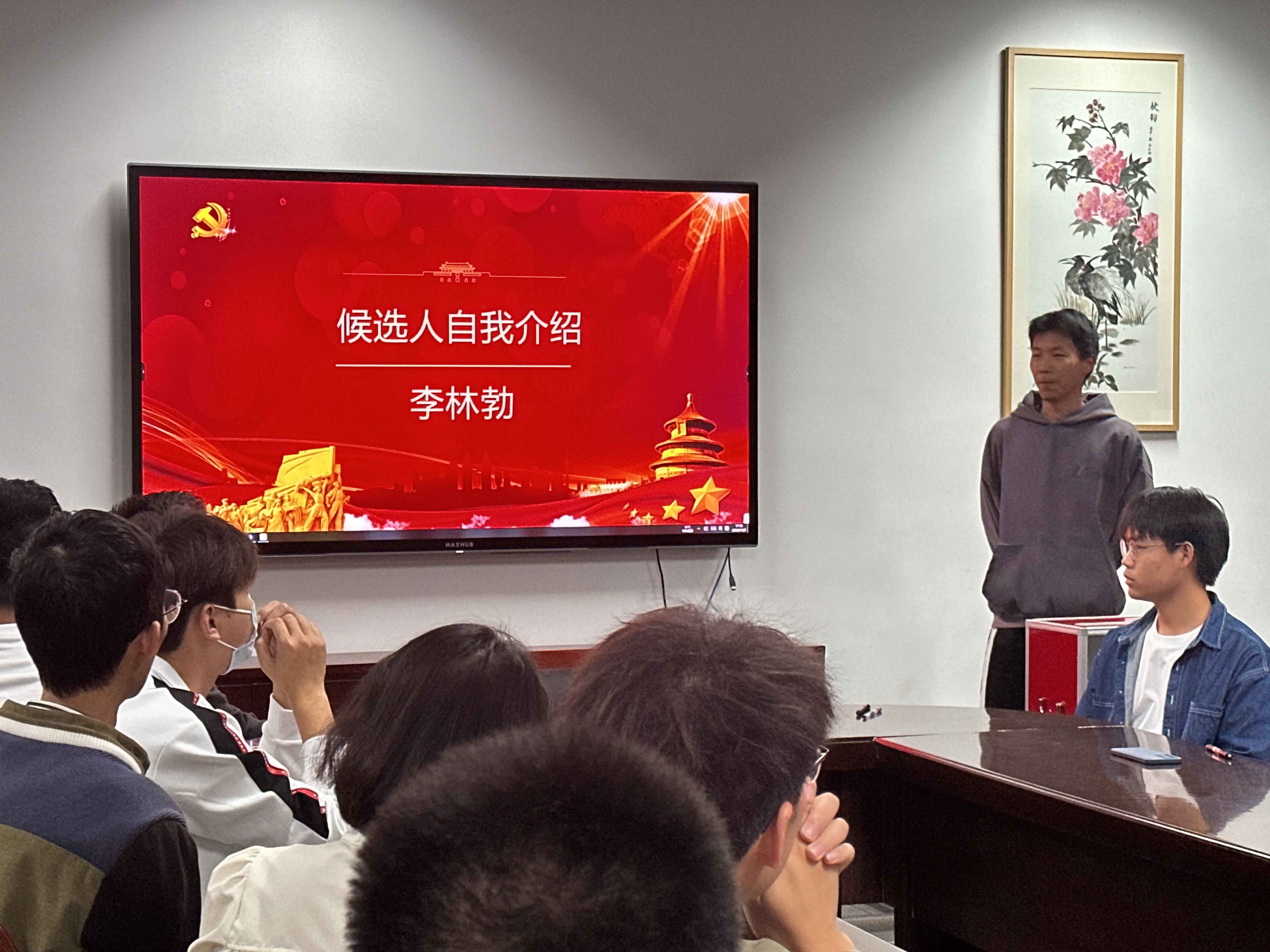 首先,卫鹏飞同志代表上届支部委员会做工作报告,全面总结了上一届支委的工作情况,并宣读了本次换届选举方法、监票人和计票人名单及候选人名单等。随后四位支委候选人依次上台进行了自我介绍,全体党员本着公平、公开、公正的原则,严格按照选举程序要求,以无记名投票方式,选举产生了新的支委委员。最后,新一任支委代表李子豪发言表态:将不断加强自身学习,提高政治素养,勤勉工作,以身作则,全力以赴地做好各项工作,在上级党委的指导下,带领全体党员把党支部建设得更好