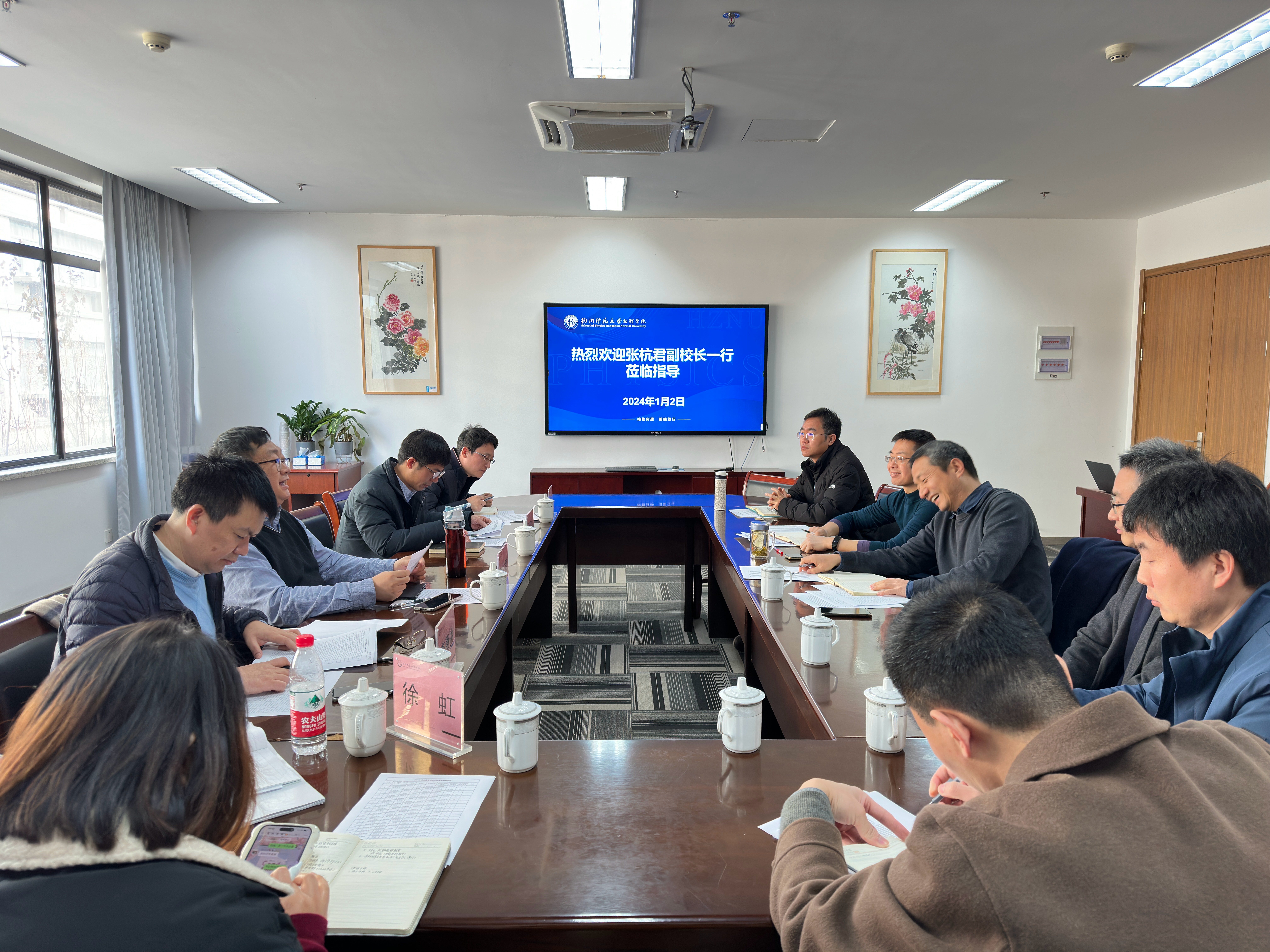 1月2日,副校长张杭君一行5人莅临换妻 调研,校人事处处长夏卫东、科研处处长李勇进、设备与实验室管理处副处长孟斐宇和换妻 全体班子成员参加座谈。