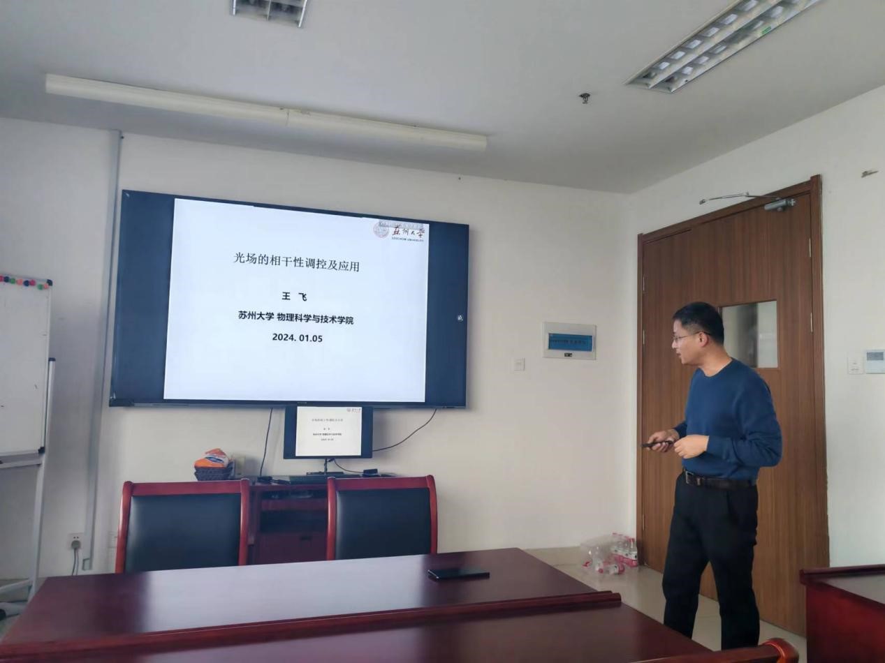 2024年1月5日下午,换妻 成功举办了一场主题为“光场相干性调控及应用”的格物讲堂系列讲座,特邀苏州大学物理科学与技术学院光学研究所所长王飞教授发表报告。王飞教授的研究领域主要集中在基于光场调控的光学成像、光学通信、光学传输等应用方面,至今已在Optics Letters、Applied Physics letters、Phys. Rev. A等学术期刊发表SCI论文百余篇。