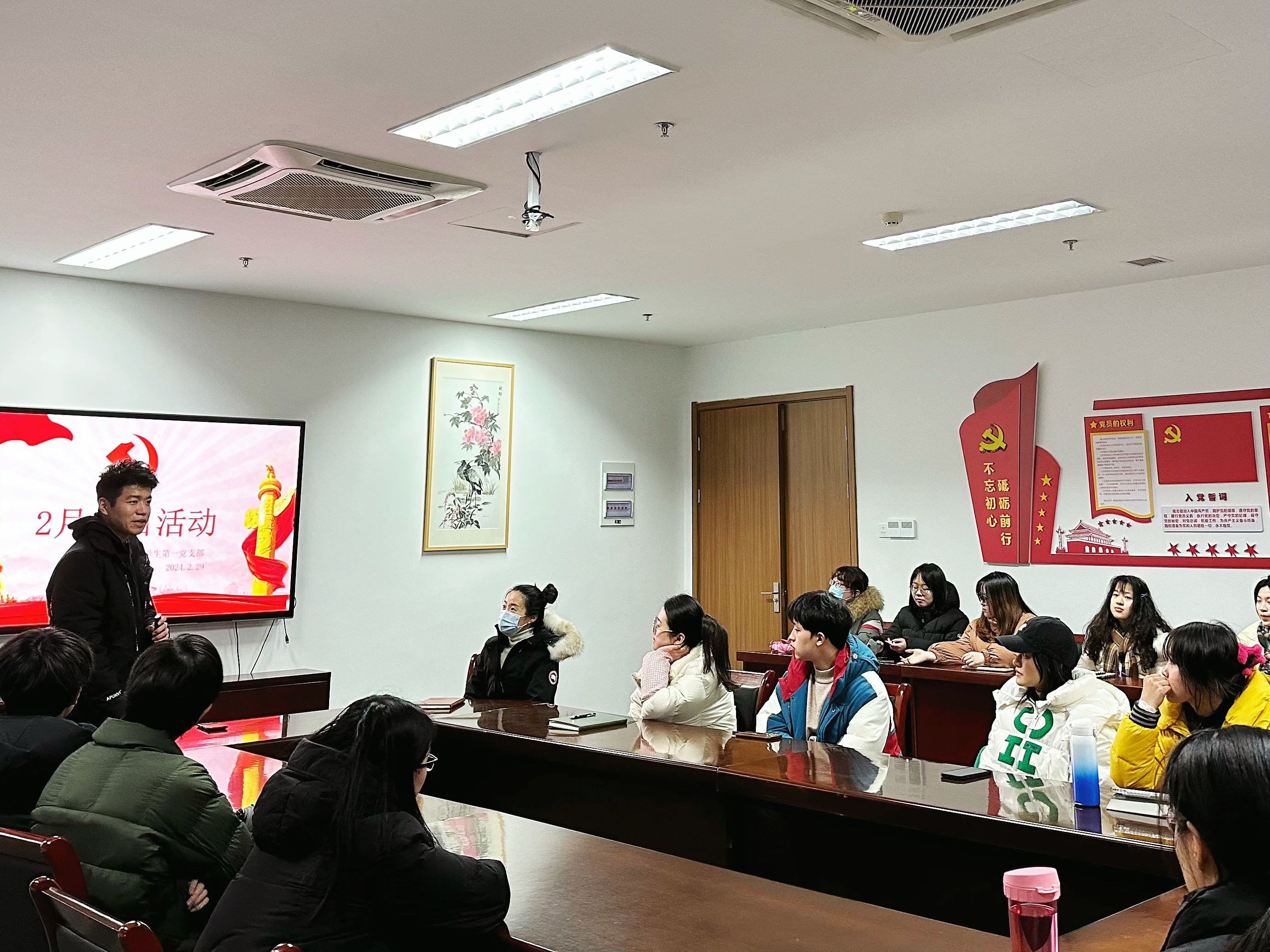 2024年2月29日18:00,换妻 学生第一党支部在勤园19号楼党员之家举行了二月份党日活动。此次活动以“弘扬传统文化 喜看家乡变化”为主题,由夏之铉和胡杉彤两位同学,对过年期间回乡的见闻进行分享。