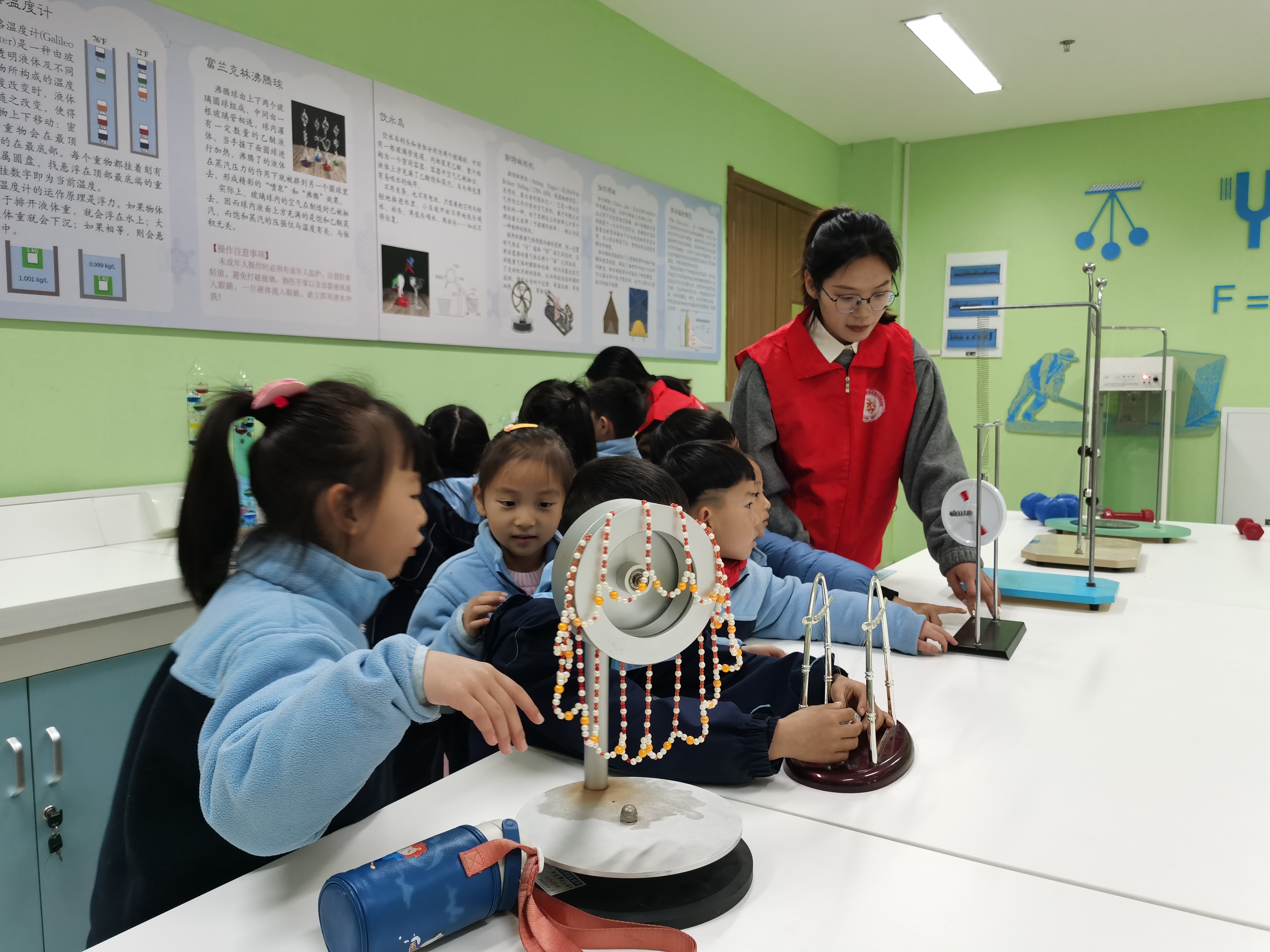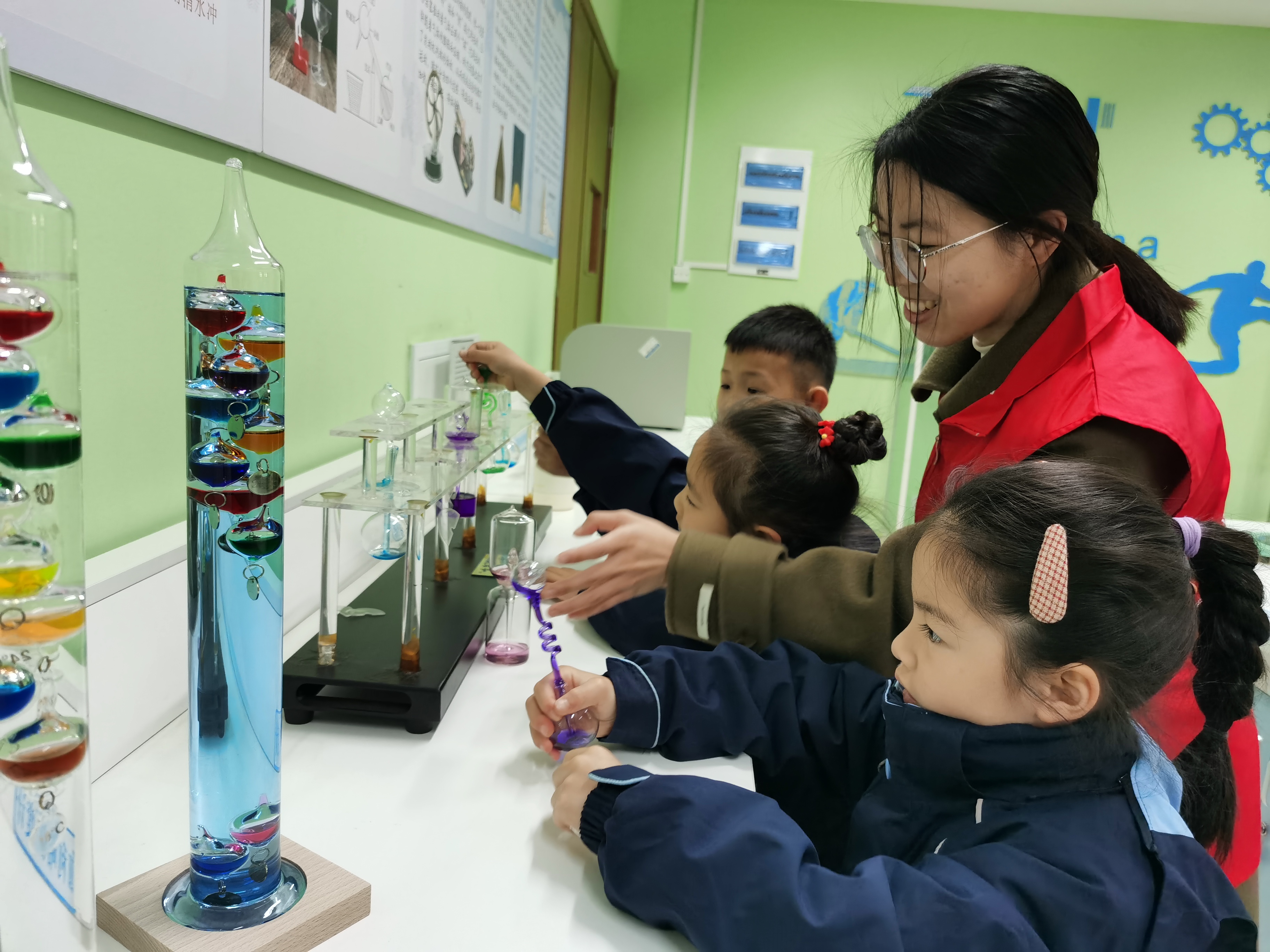 除了演示实验室,孩子们还主动探索走廊中的趣味实验。从“听话的小球”到各式各样的科技展品,惊叹声与阵阵笑声响遍整个走廊,呈现出和谐、浓郁的科学氛围。