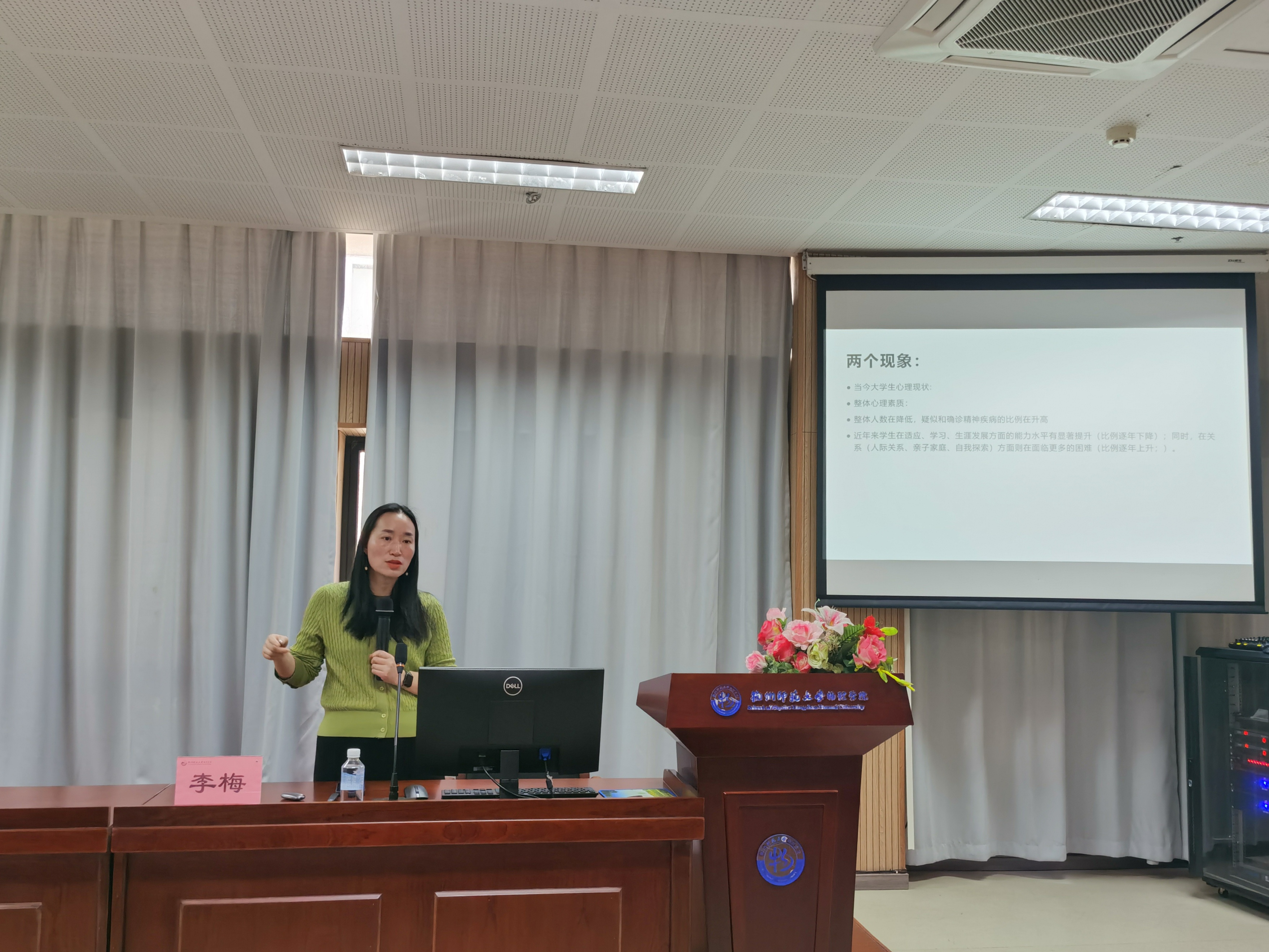 讲座伊始,李梅老师从广泛意义的学生工作开展范式这一角度切入,阐述了当今大学生心理现状。随后,通过对常见心理疾病表现形式的讲解,介绍了当前学生常见的心理疾病,并通过生动的案例介绍了一些关于自杀与自残的事实及警告信号。最后,李老师讲解了如何对待重点关注学生,包括危机排查的对象、危机排查的时机及如何处理危机事件。李老师的讲座深入浅出,既有理论的高度,又有实践的指导,使在场的班主任和研究生导师深受启发。