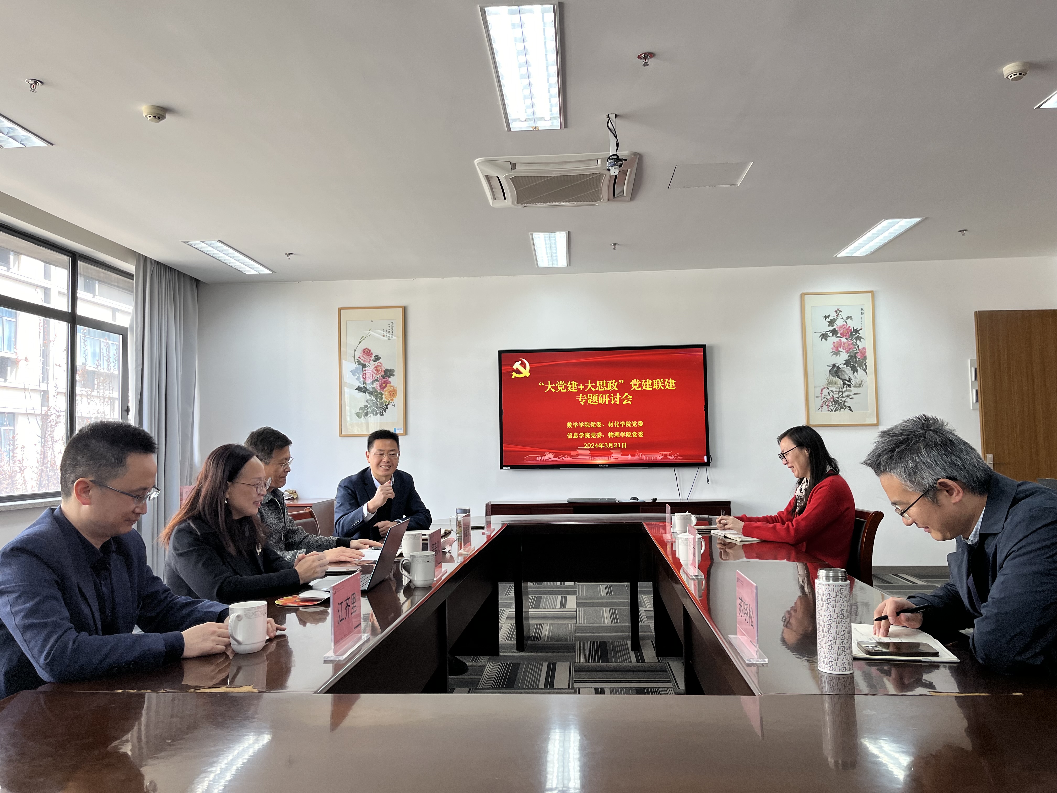 3月21日上午,由我校数学学院、换妻 、材化学院、信息学院联合举办的“大党建+大思政”党建联建专题研讨会在换妻 党员之家召开,四个学院的党委书记、副书记参加会议。
