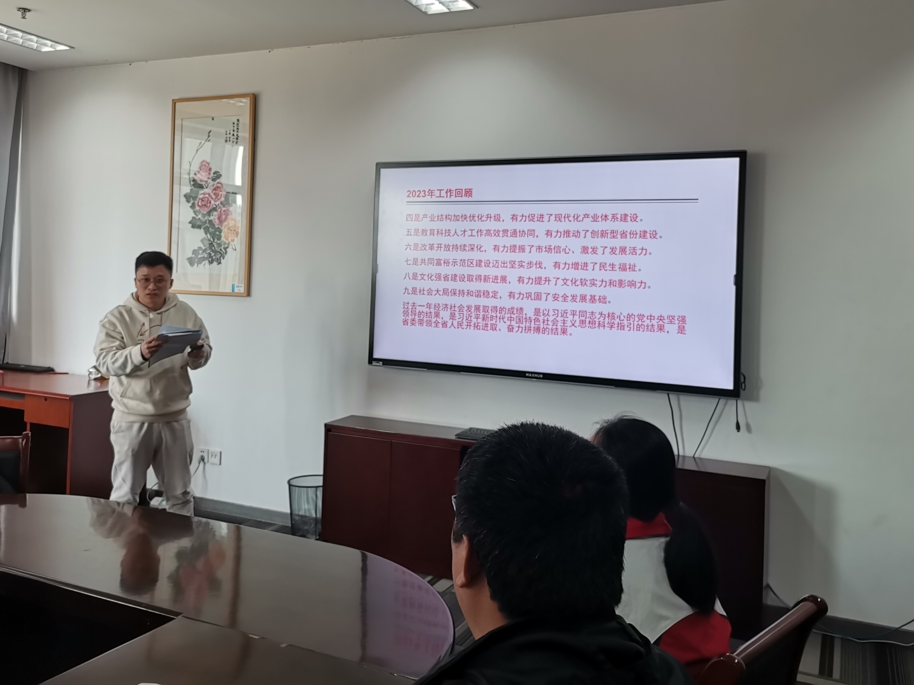 李腾超老师首先介绍了在浙江省第十四届人民代表大会第二次会议上省长王浩作的政府工作报告。报告对2023年的工作进行了回顾,提出了2024年的目标任务和重点工作。随后李老师结合自己在浙江大学求学时的所见所闻所感,介绍了中科院院士、浙江大学换妻 教授唐孝威的科研工作事迹:浙江大学玉泉校区第十二教学楼,有一间“院士办公室”,里面的布置十分简朴,两张干净的小桌子,几张简易的椅子,一摞摞厚厚的文献。这里正是唐孝威院士工作的地方。唐院士是我国“两弹”研制的幕后英雄,主要从事原子核物理、高能实验物理方面的研究,后来又转到生物物理、医学物理、核医学、脑科学等交叉学科研究领域工作。唐院士长期坚守在教学科研第一线,在科学研究、人才培养等方面做出了卓越贡献。