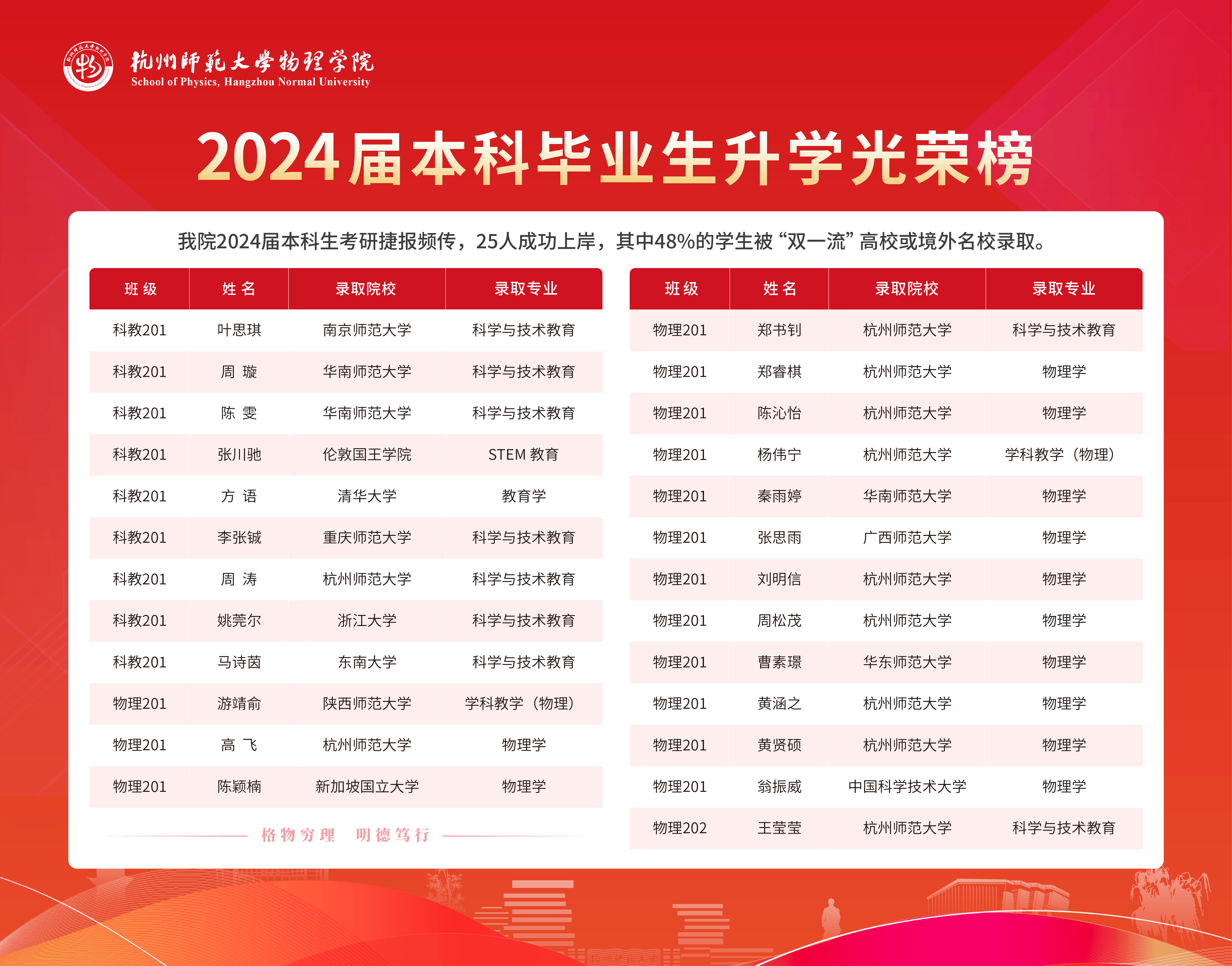 换妻 2024届本科生考研捷报频传,25人成功上岸,其中48%的学生被“双一流”高校或境外名校录取。科教201方语同学在党员教师持续鼓励与指导下,成功考取清华大学研究生。