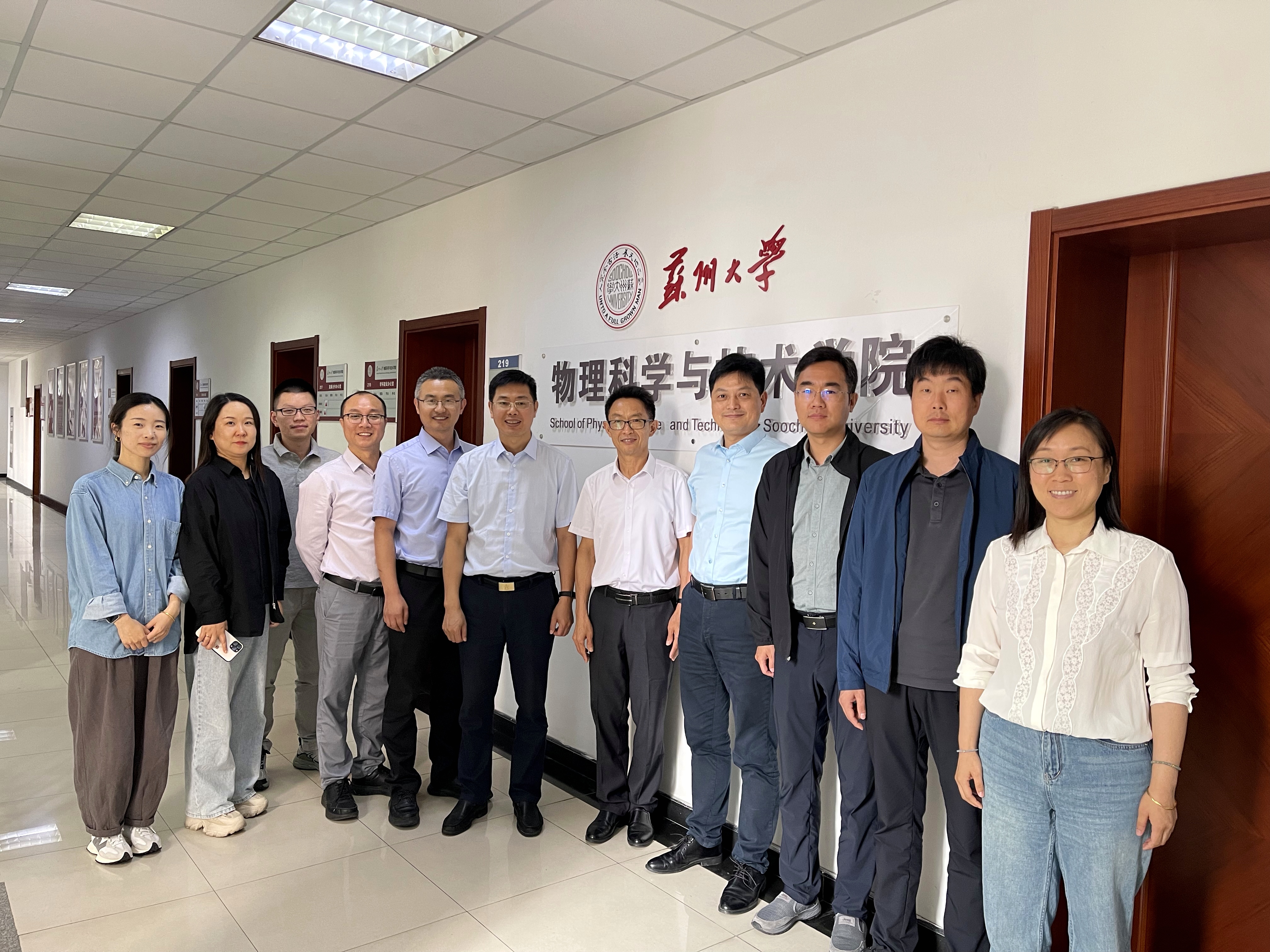 为深化校际合作,学习兄弟院校先进教育和管理经验,6月6日上午,院党委书记何军、副院长孙哲、副书记苏晓松和学院科室负责人一行8人赴苏州大学物理科学与技术学院进行考察交流。苏州大学物理科学与技术学院党委书记杨礼富、副院长赵承良、副院长周丽萍及学院各科室负责人参加座谈。