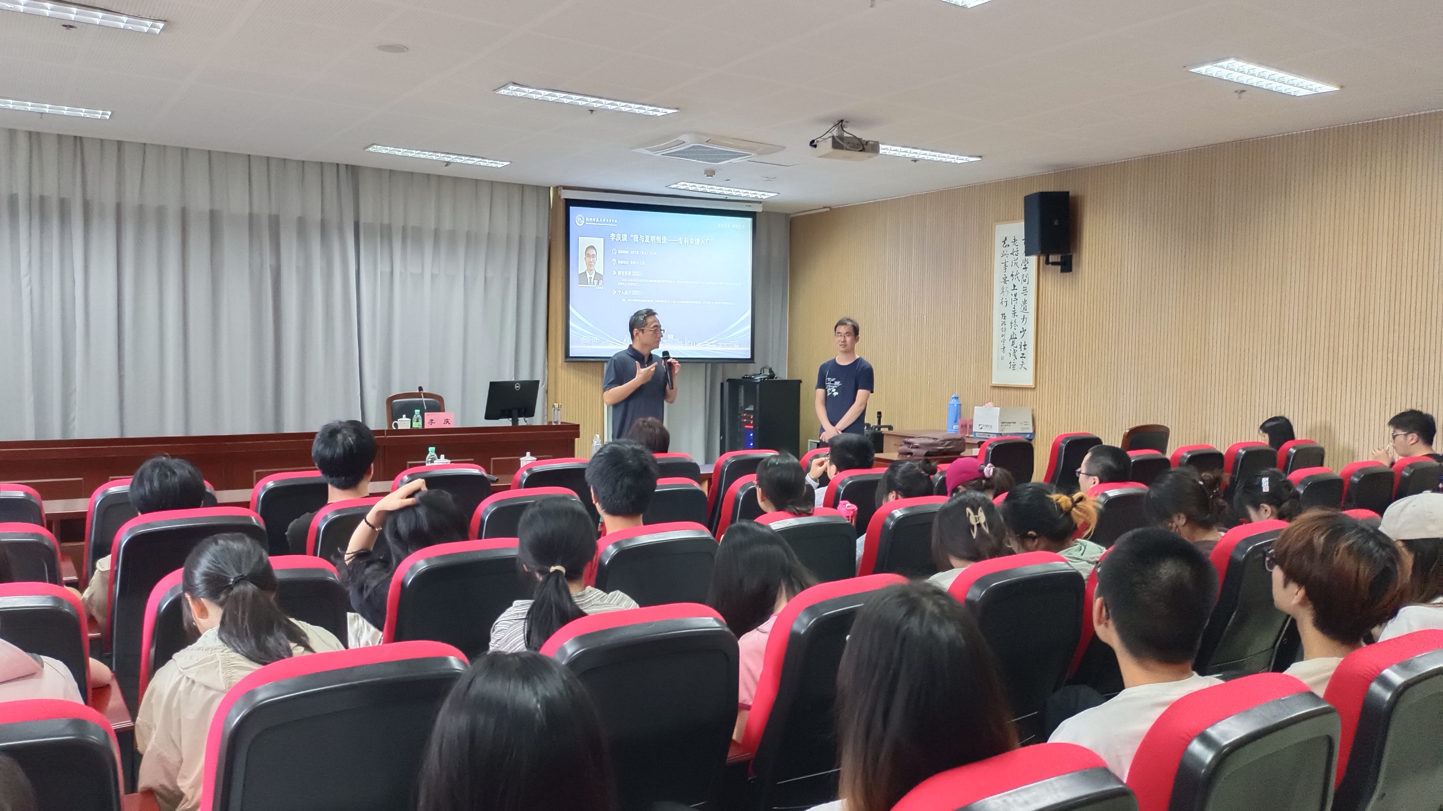 6月7日下午,换妻 2016届物理学校友、中国发明协会会员、安徽信息工程学院教师李庆返校作题为“我与发明创造——专利申请二三事”讲座。学院院长侯红生教授、校友导师徐庆君老师出席讲座。