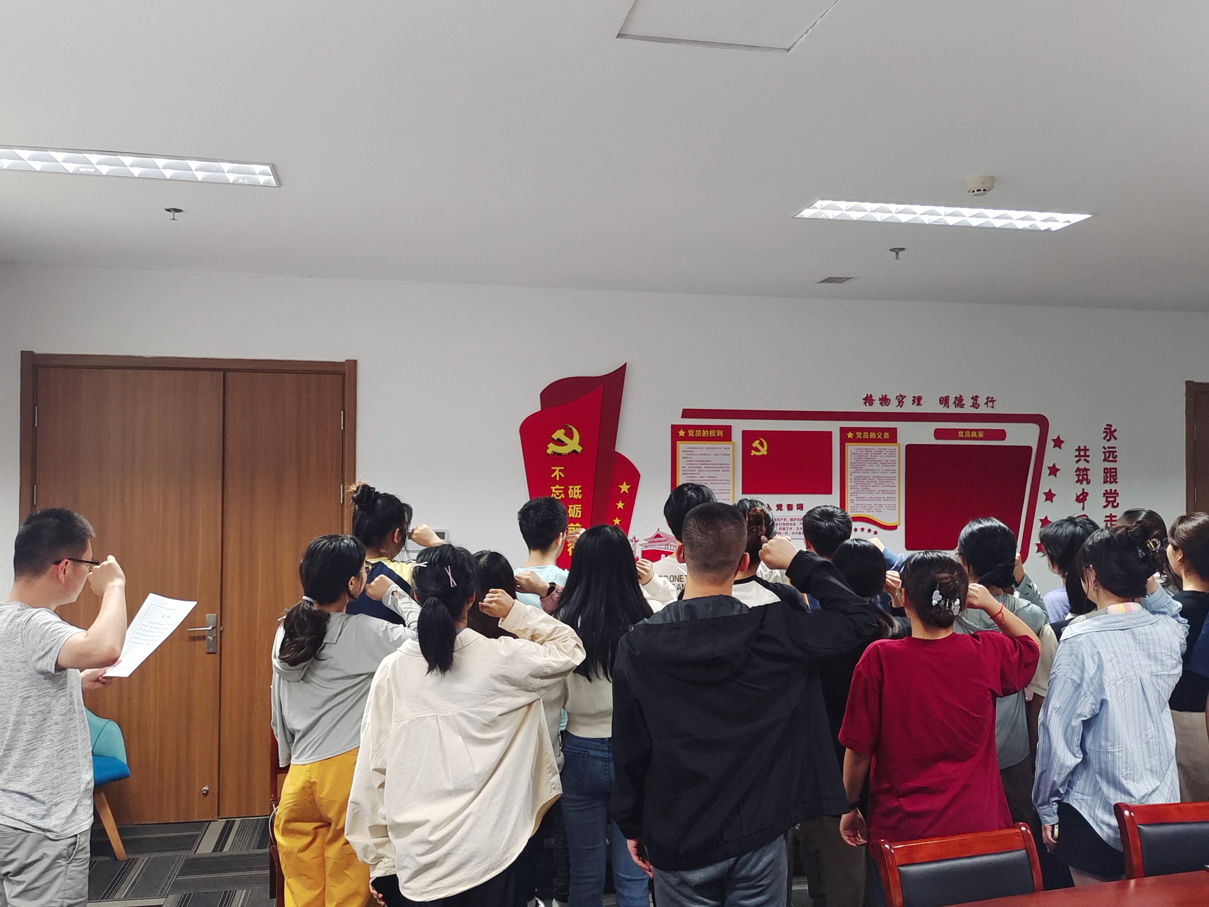 经支部讨论投票决定,通过项荣慧等16人发展为中共预备党员,夏怡琪等13人转正为正式党员,由支部书记带领大家宣读中国共产党入党誓词。