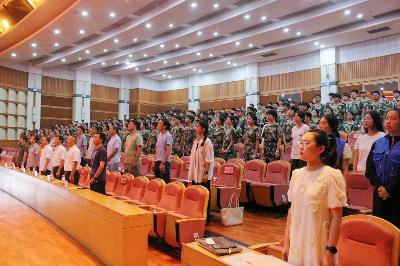 开学第一课在全场庄严雄伟的国歌声中拉开了帷幕。