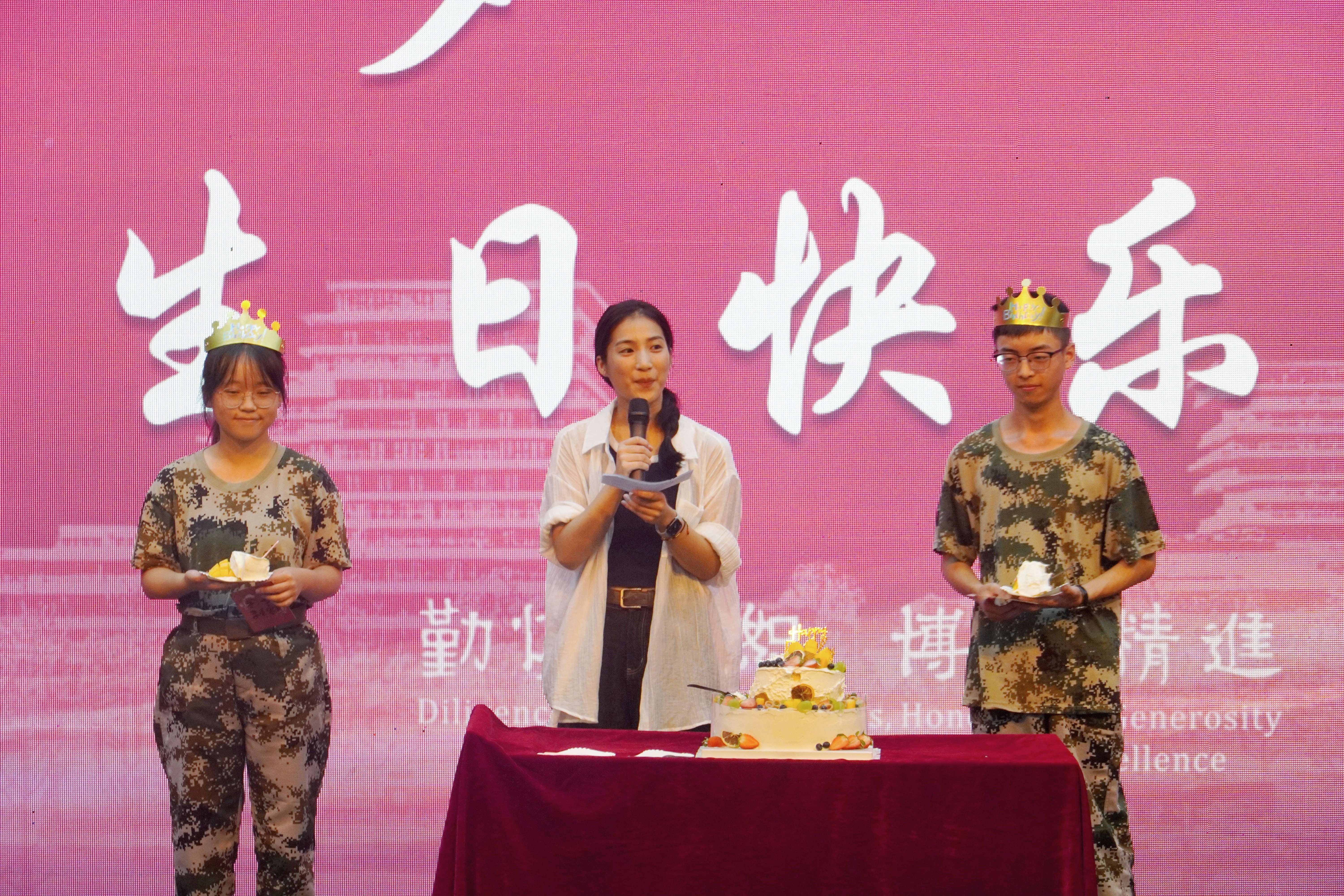 一岁一“理”是换妻 的传统活动,在开学第一课的最后,大家共同为物理243班刘梦怡和物理242班王费佳两位寿星庆祝生日在老师们和全体2024级新生们的见证下,两位同学在蛋糕前许下生日心愿,辅导员周莹老师为她们切下蛋糕并送上了自己满满的祝福。
