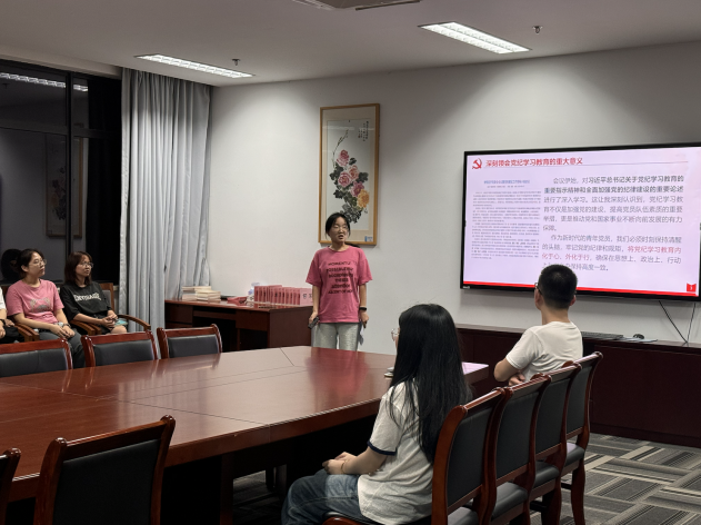 项荣慧围绕党日活动主题,从“深刻领会党纪学习教育的重大意义”、“总结过去,展望未来”、“聚焦问题,强化责任”、“持之以恒,推动常态长效”四个角度解读学校党委党纪学习教育内容,她认识到党纪学习教育不仅是加强党的建设、提高党员队伍素质的重要举措,更是推动党和国家事业不断向前发展的有力保障;周琦以“深化党纪学习,筑牢发展基石”为题,聚焦党纪学习教育的“学纪”、“知纪”、“明纪”、“守纪”、“肃纪”五点,以此深化以案促学促改促治,一体抓好党性党风党纪。
