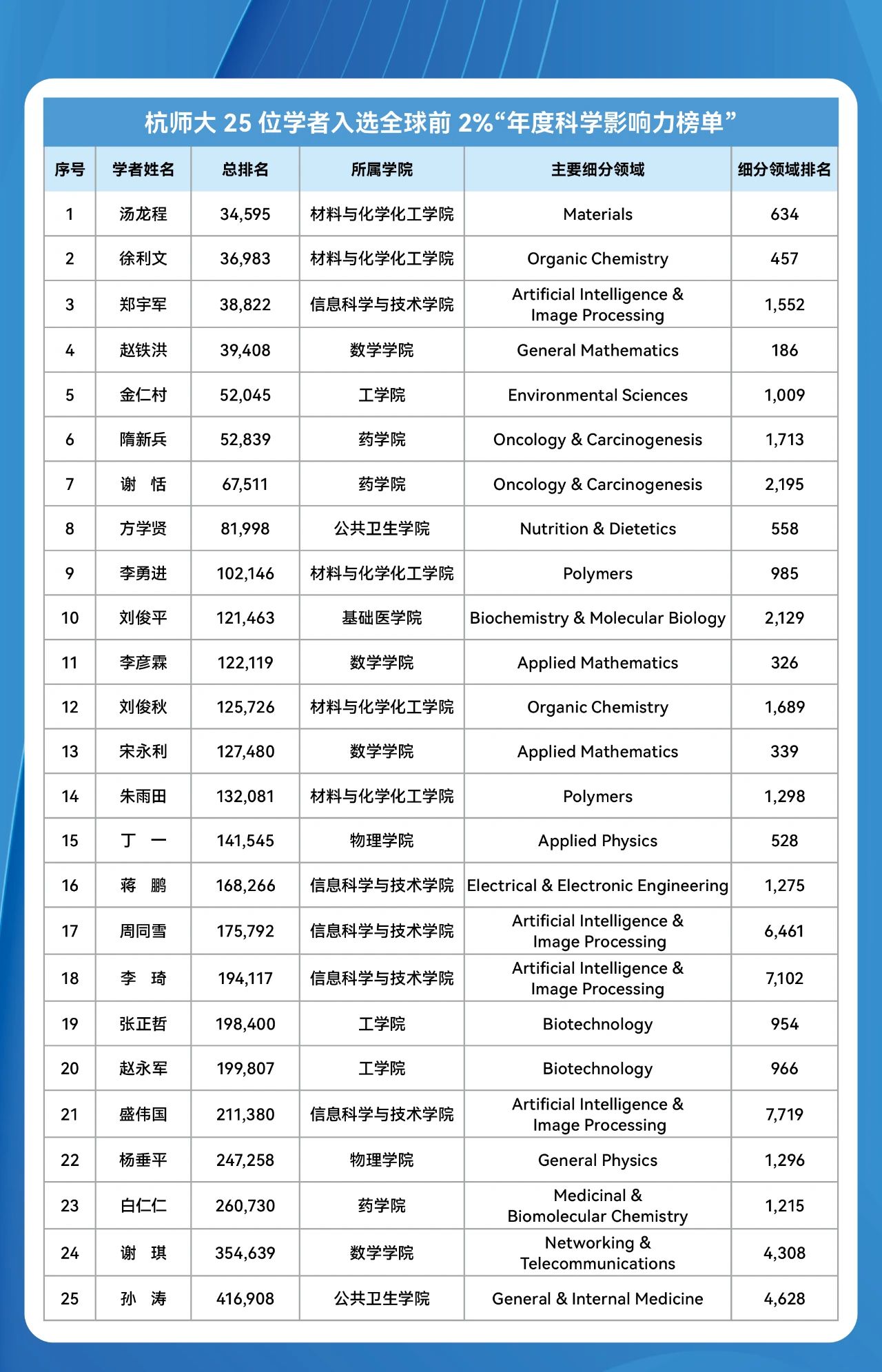 杭师大25位学者入选