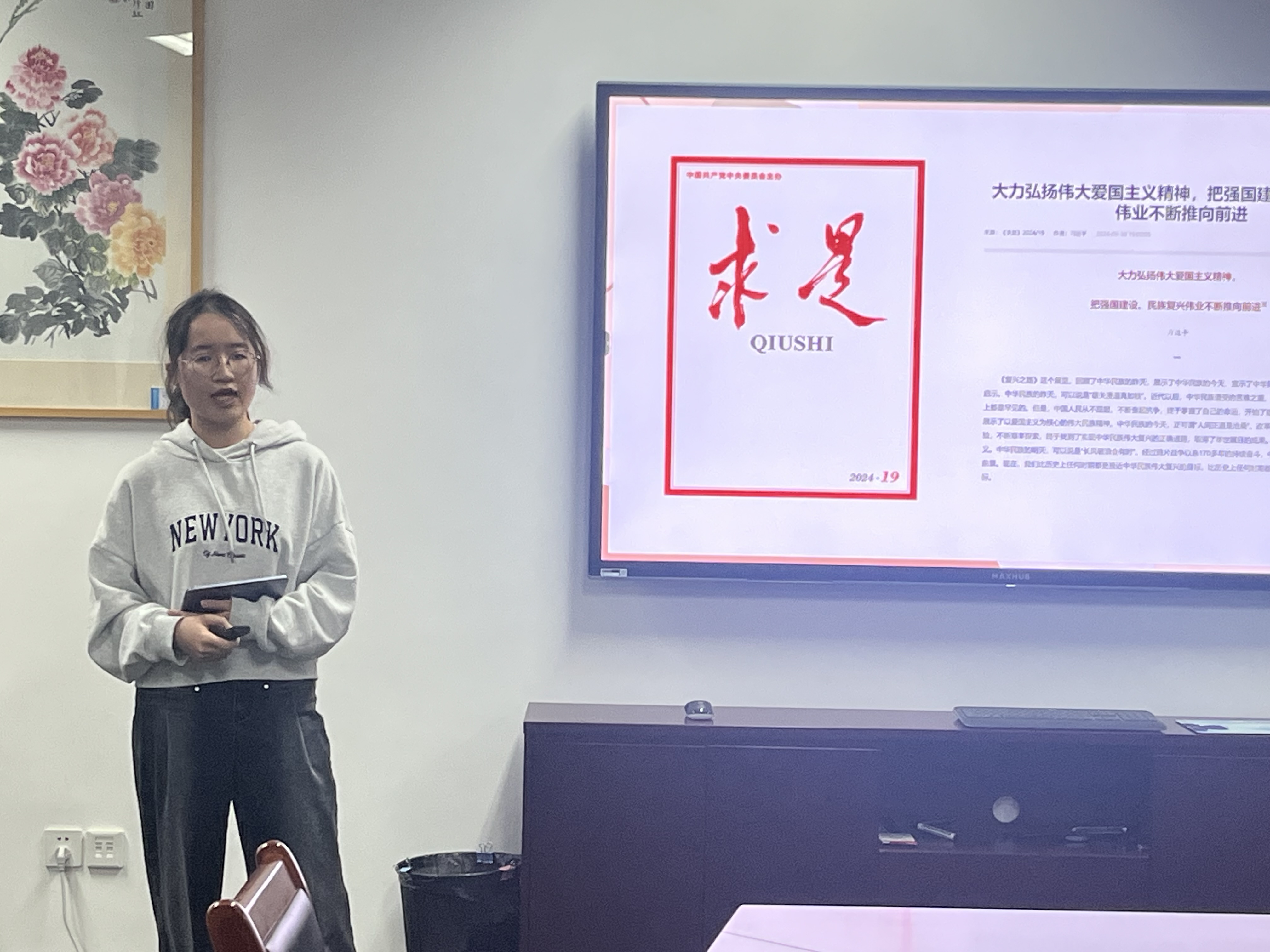 2024年10月24日,换妻 学生第一党支部于勤19-226会议室开展了十月主题党日活动,由薛景缤、舒一惠两位党员分享他们关于爱国主义精神的心得体会。