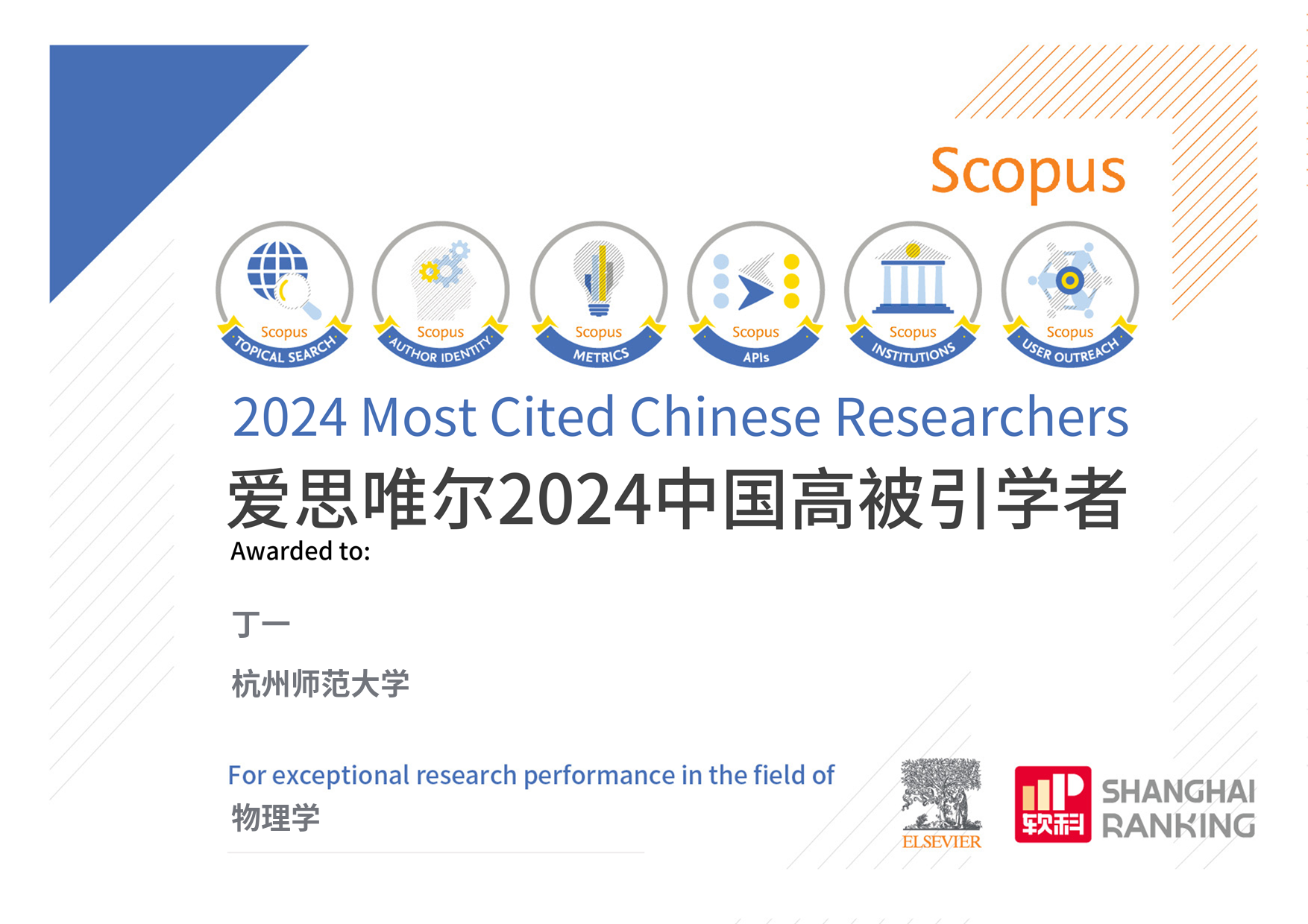 2025年3月25日,爱思唯尔(Elsevier)发布了2024年度“中国高被引学者”(Highly Cited Chinese Researchers)榜单,换妻 丁一教授凭借在学术领域的卓越贡献,连续五年(2020、2021、2022、2023、2024)入选物理学高被引学者。