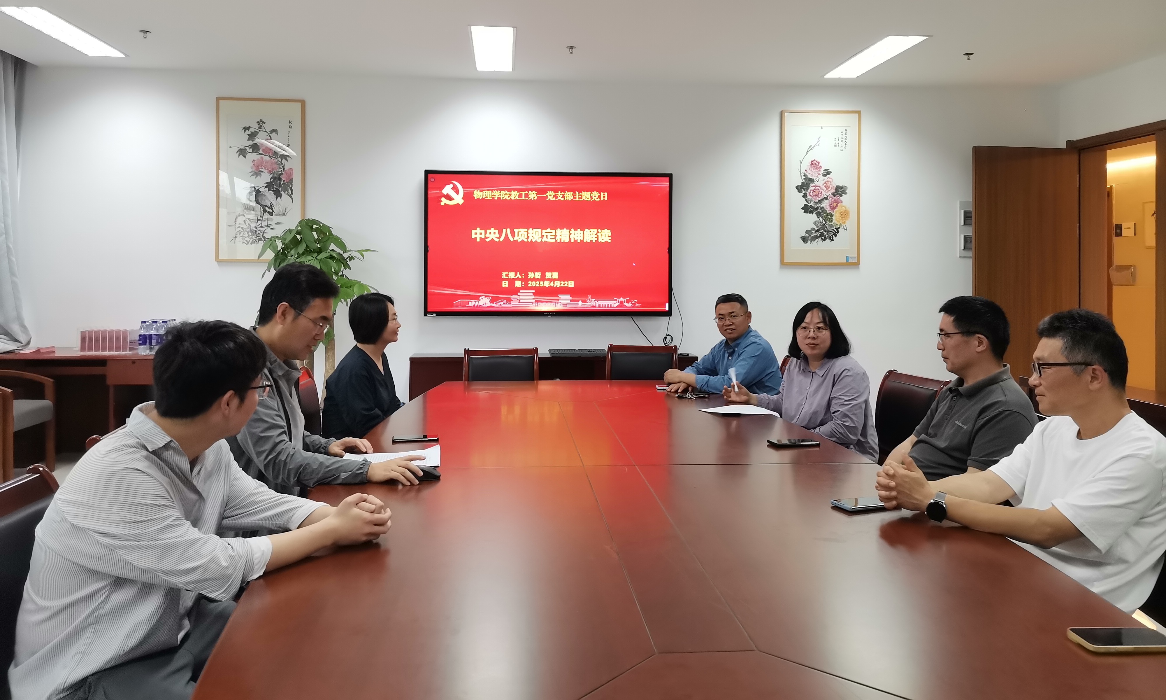 4月22日,教工第一党支部在学院党员之家,围绕本支部制定的“深入贯彻中央八项规定精神学习教育工作计划”开展了本月的主题党日活动。