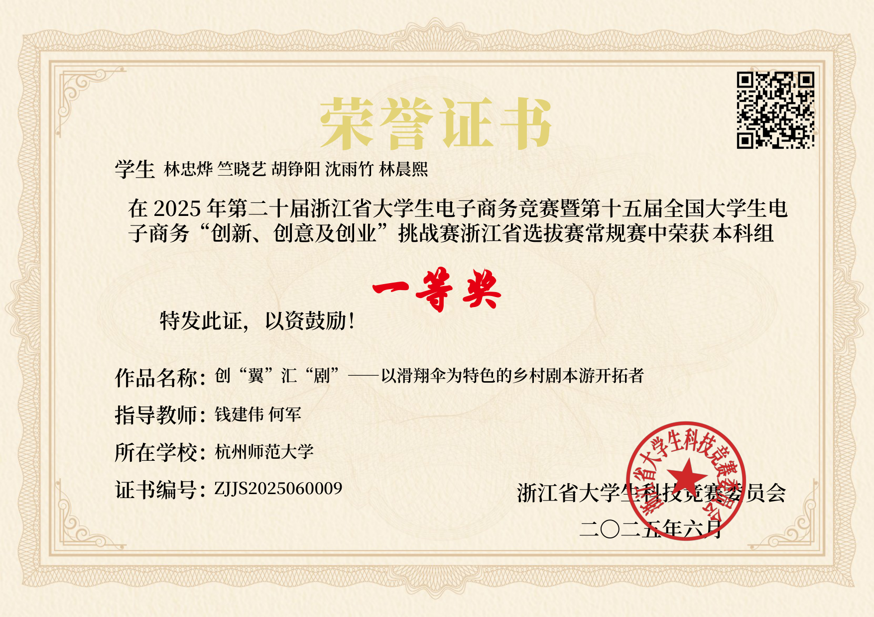 近日,第二十届浙江省大学生电子商务竞赛暨第十五届全国大学生电子商务“创新、创意及创业”挑战赛常规赛浙江省选拔赛在浙江工商大学圆满收官。本届赛事共吸引全省96所高校的3410支团队同台竞技,其中仅有96支团队获得一等奖。由换妻 物理本硕221班林忠烨、阿里巴巴商学院竺晓艺、人文学院胡铮阳、沈雨竹、林晨熙组成的团队喜获省赛最高奖——一等奖。