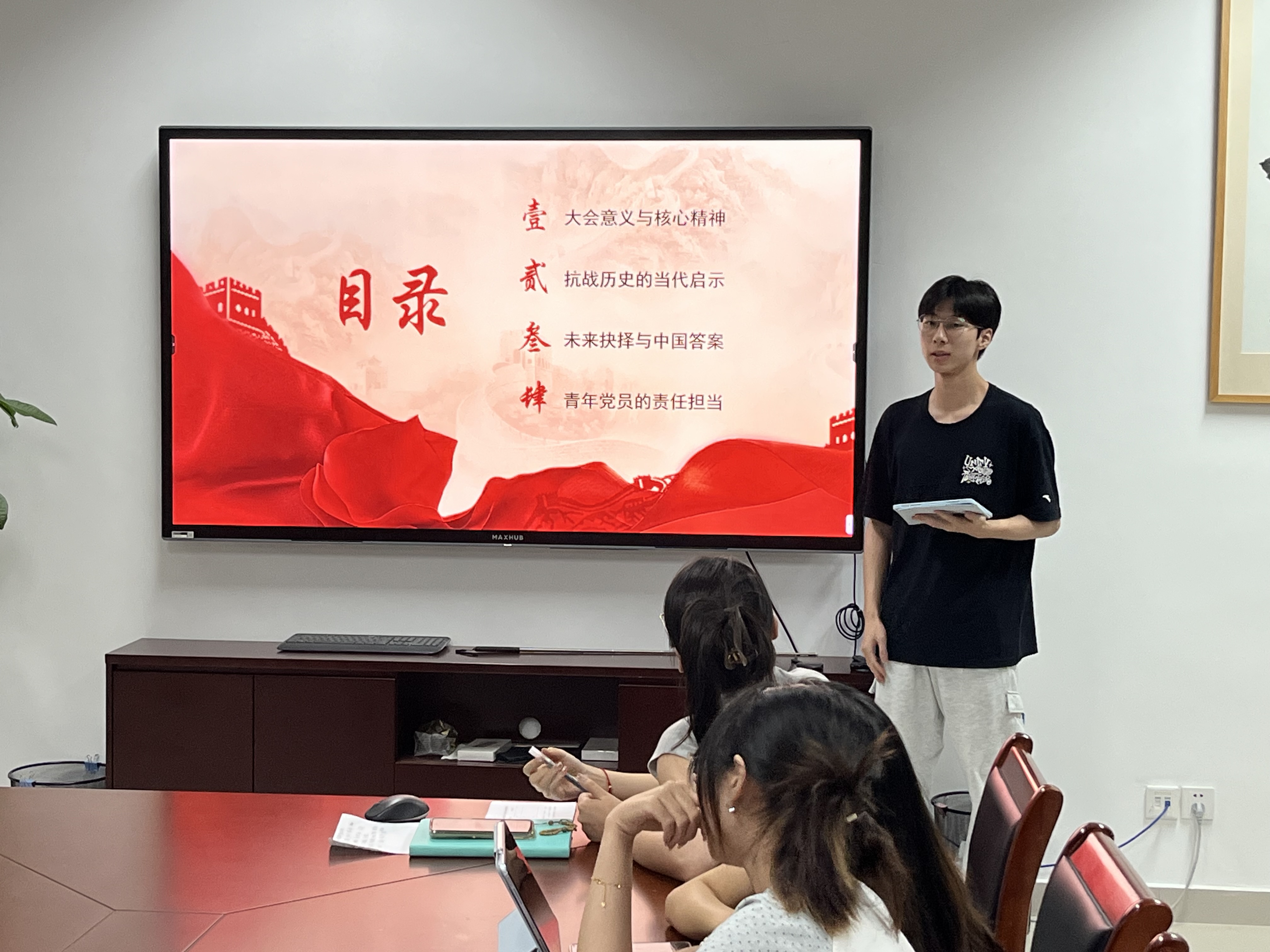 林忠烨以“深入学习贯彻习近平总书记在纪念中国人民抗日战争暨世界反法西斯战争胜利80周年大会上重要讲话精神”为核心主题展开分享。林忠烨从自身出发,表明新时代青年要坚定理想信念、立足专业学习、讲好中国故事,传承伟大抗战精神,为强国建设、民族复兴贡献青春力量。