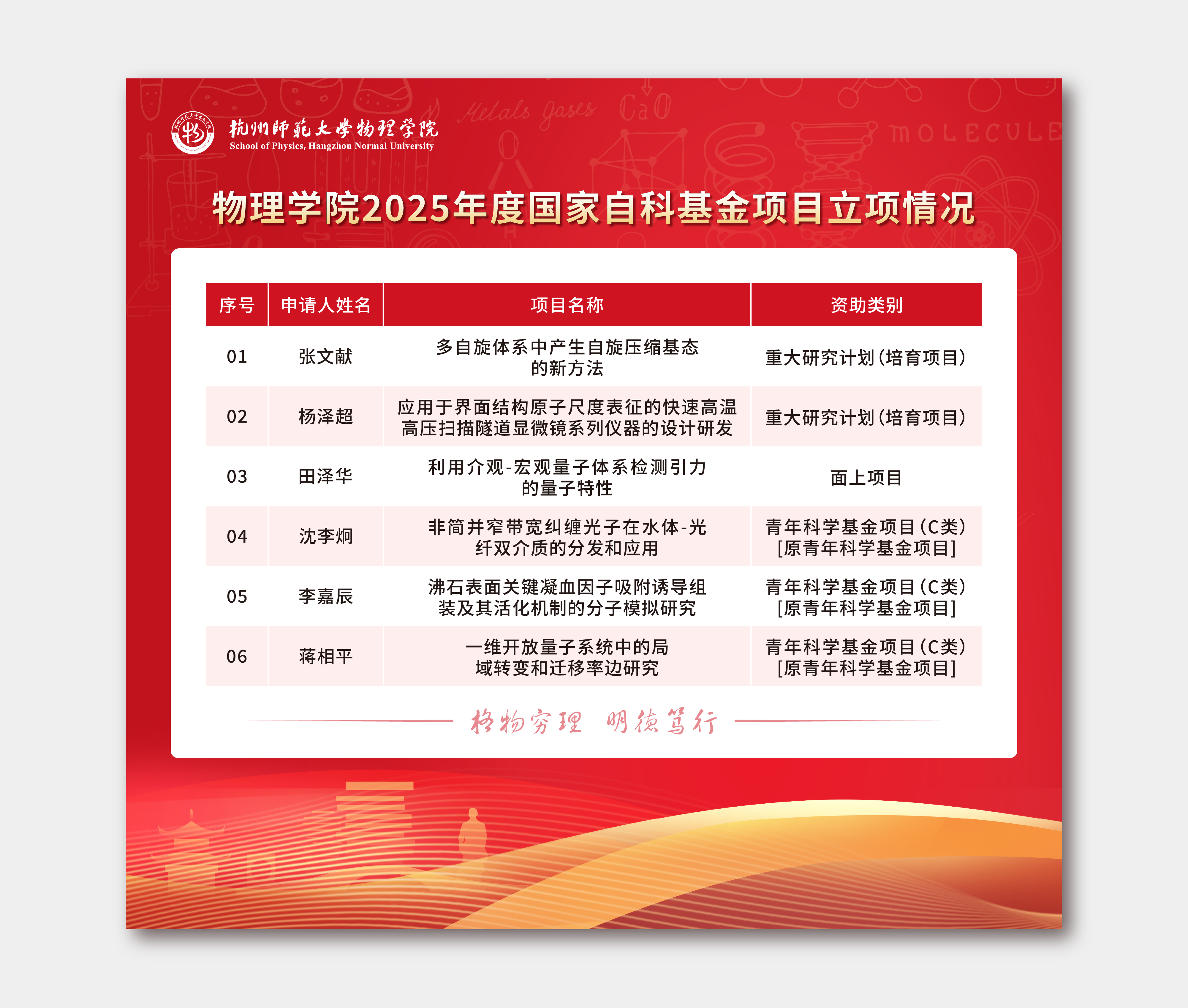 张文献教授团队项目致力于开发制备长寿命自旋压缩态的新方法,研究在实验噪声环境下如何利用量子调控与哈密顿量工程技术生成高度压缩态,并计划通过核磁共振实验验证其可行性。该项目预期可为多粒子量子纠缠态的制备及后续量子精密探测研究提供理论与实验基础。