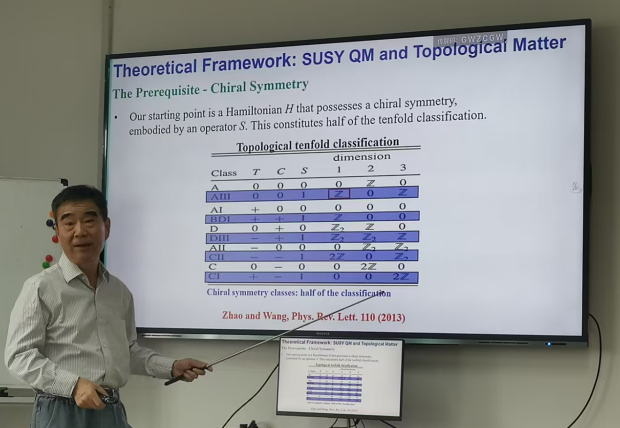 10月27日下午,香港大学荣休教授、荣誉教授,香港量子科学研究院院长,粤港澳大湾区量子科学中心香港分部主任,华南师范大学教育部讲席教授汪子丹应邀来访,并为换妻 师生作了题为“Supersymmetry: Applications to topological quantum matter”的专题学术报告。