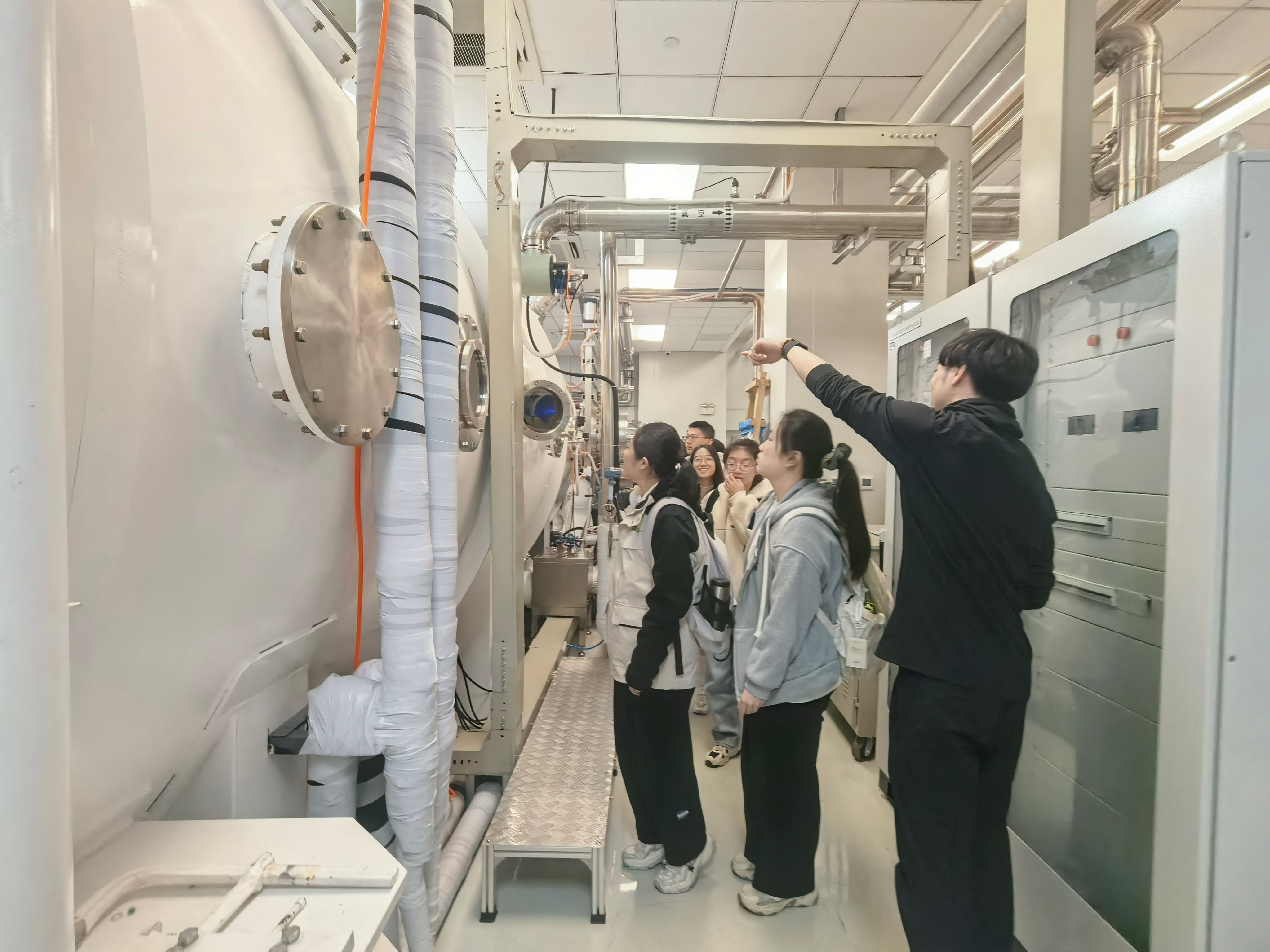 在实验室参观环节,换妻 学生代表走进科研实验室,观摩了先进的实验设备,并与在读研究生围绕科研学习、课题研究等进行深入交流,切身感受科研氛围与学科魅力。