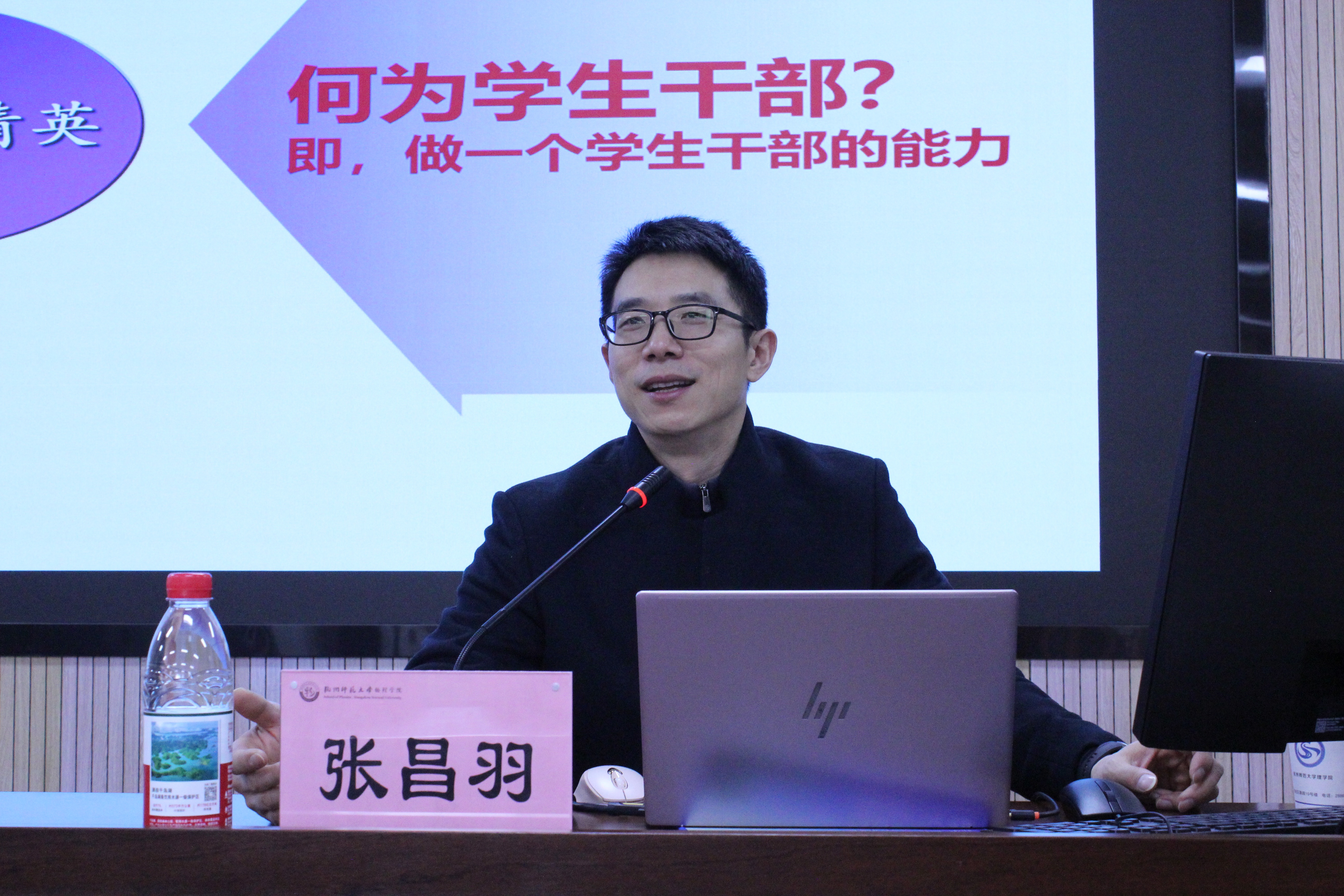 随后,张昌羽老师围绕《如何做一名闪闪发光的学生干部》的专题展开培训。他结合丰富的学生工作经验,用七种色彩系统阐述了学生干部应具备的综合素养。