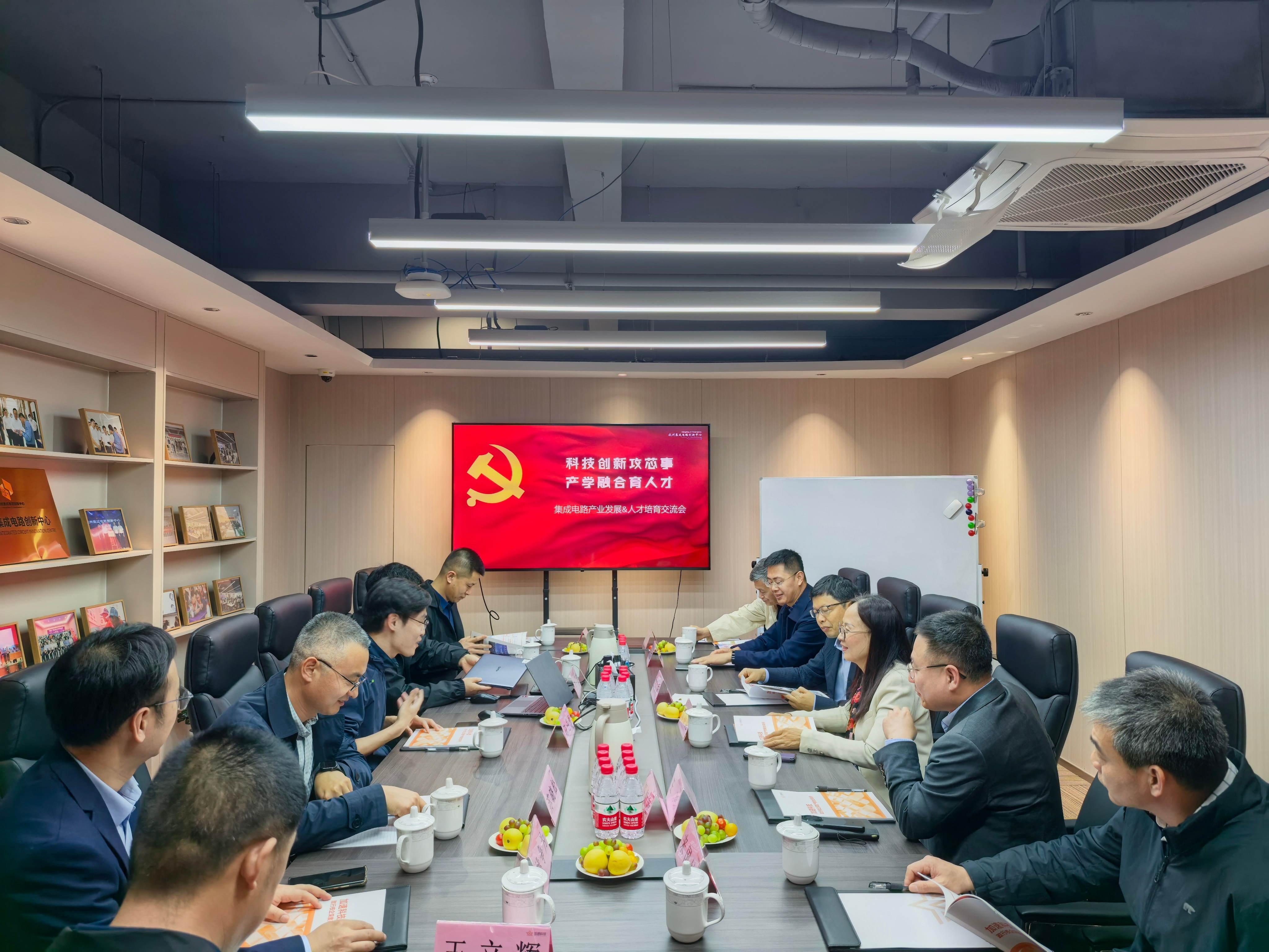随后,大家来到杭州加速科技有限公司,参观半导体集成电路测试专业展厅。企业教育事业部经理李浩详细介绍了集成电路测试人才培养项目。双方就专业人才联合培养、毕业生就业输送、实践育人基地共建等议题展开探讨,着力打通从校园到职场的“最后一公里”。